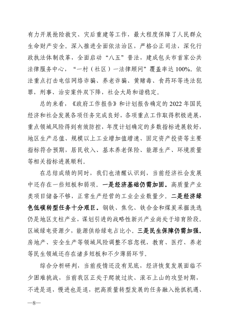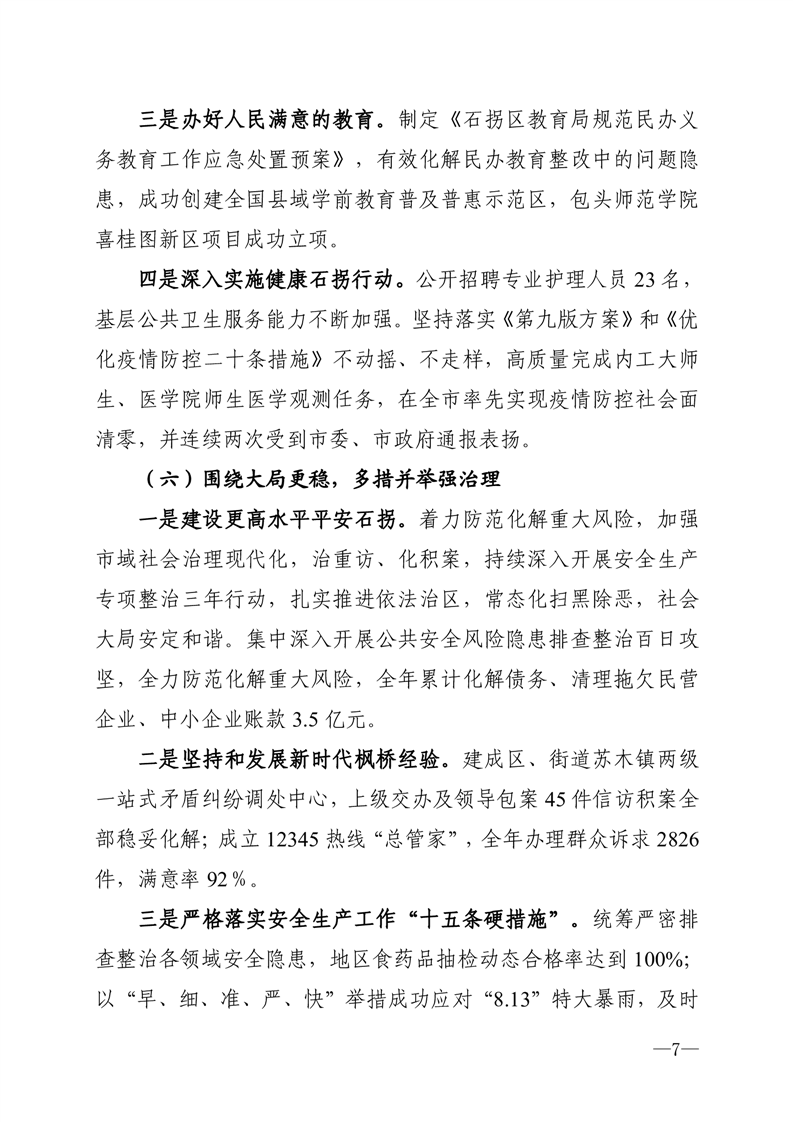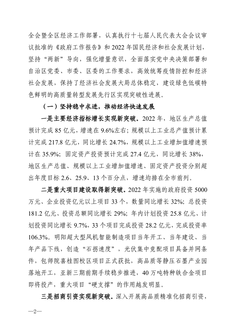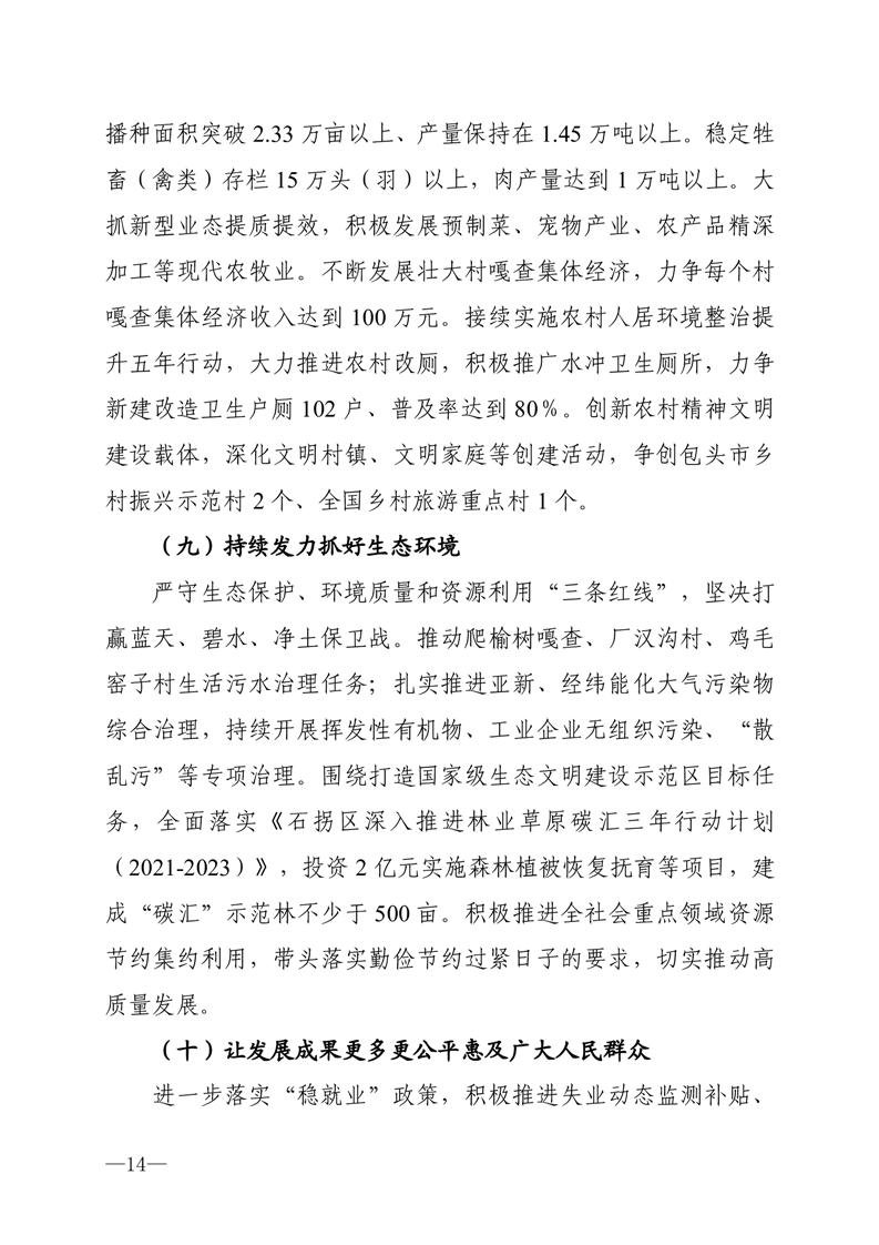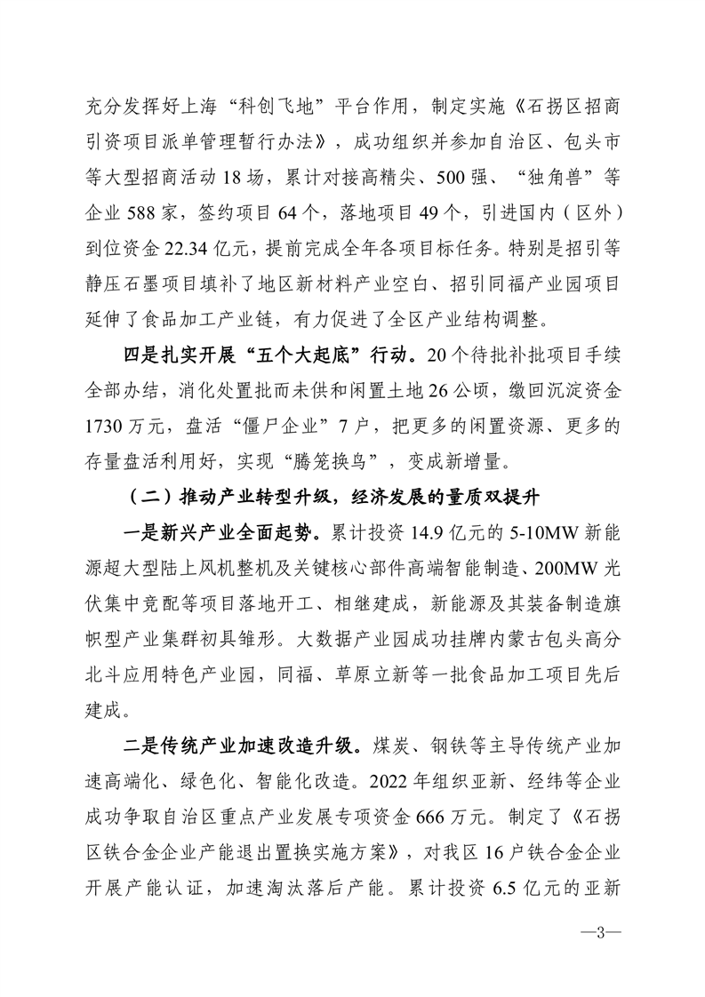 关于石拐区 2022 年国民经济和社会发展计划执行情况与 2023 年国民经济和社会发展计划(草案)的报告