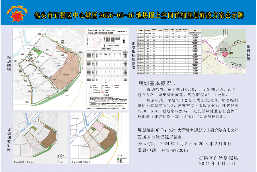 包头市石拐区中心城区SGKG-05-46地块国土空间详细规划修改方案公示牌
