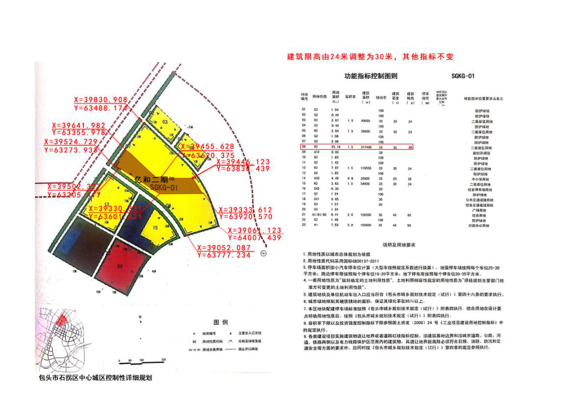本次控规调整08地块部分用地,高度由24米调整为30米,其他指标均保持原控制指标不变。