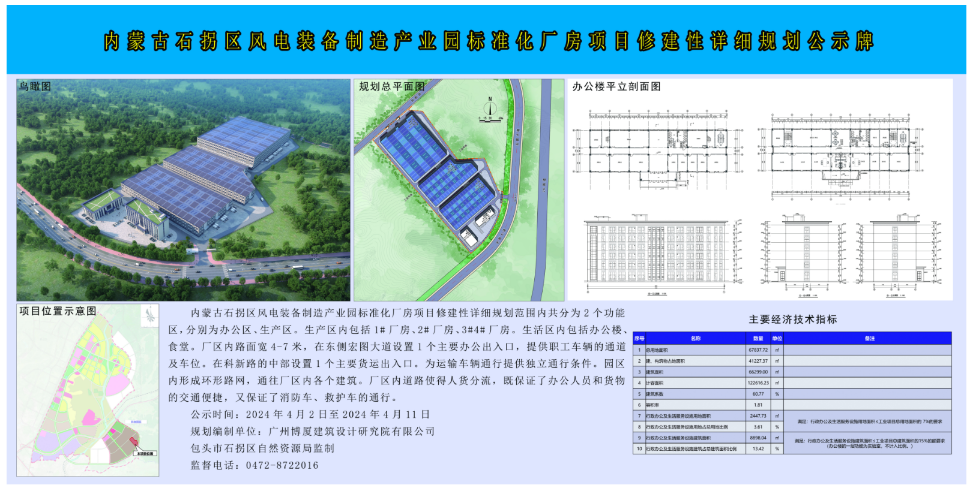 内蒙古石拐区风电装备制造产业园标准化厂房项目修建性详细规划公示牌