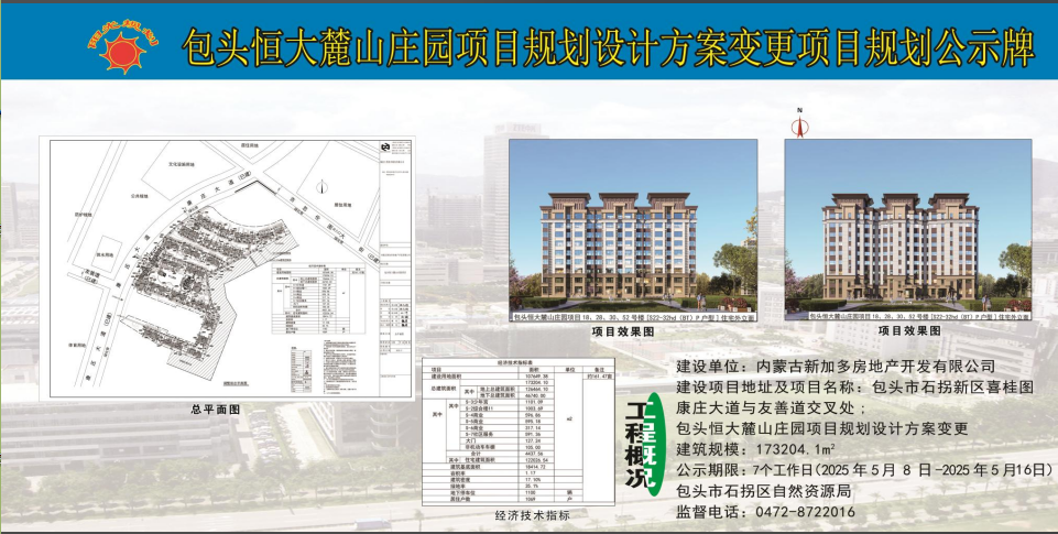 包头恒大麓山庄园项目规划设计方案变更项目规划公示牌