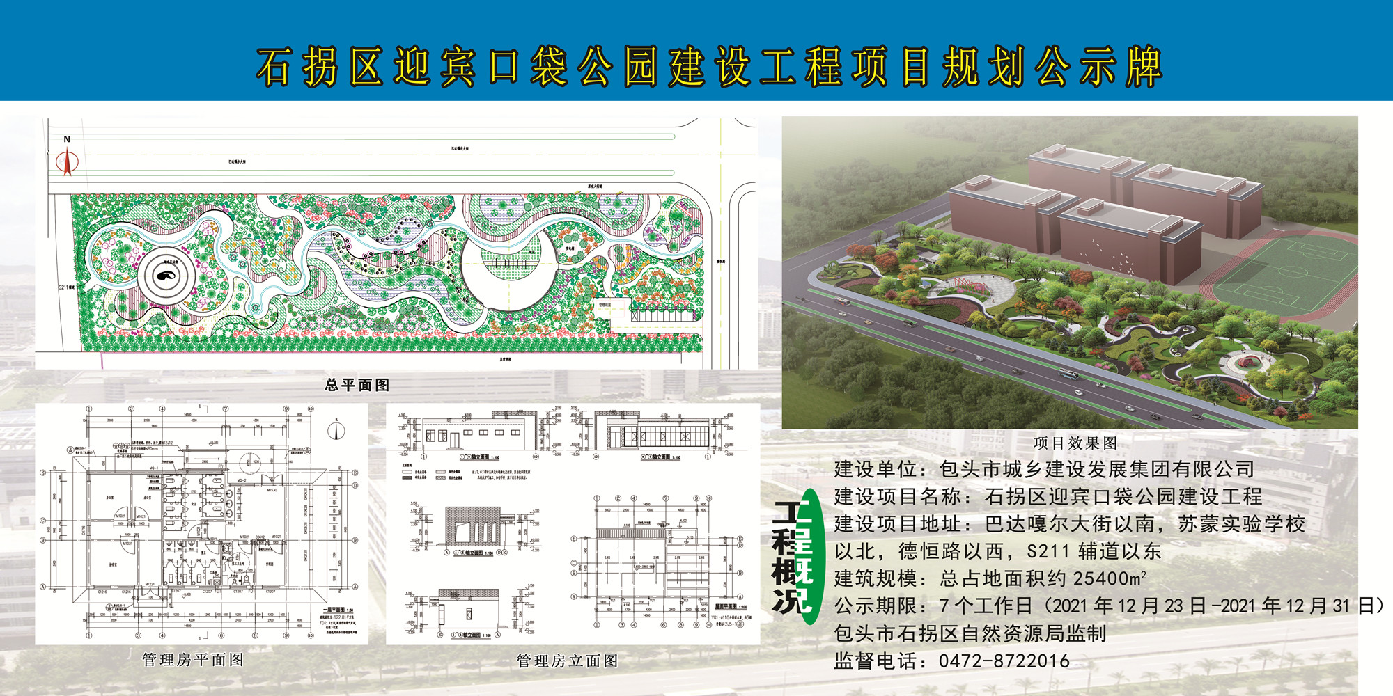 石拐区迎宾口袋公园建设工程项目规划公示牌