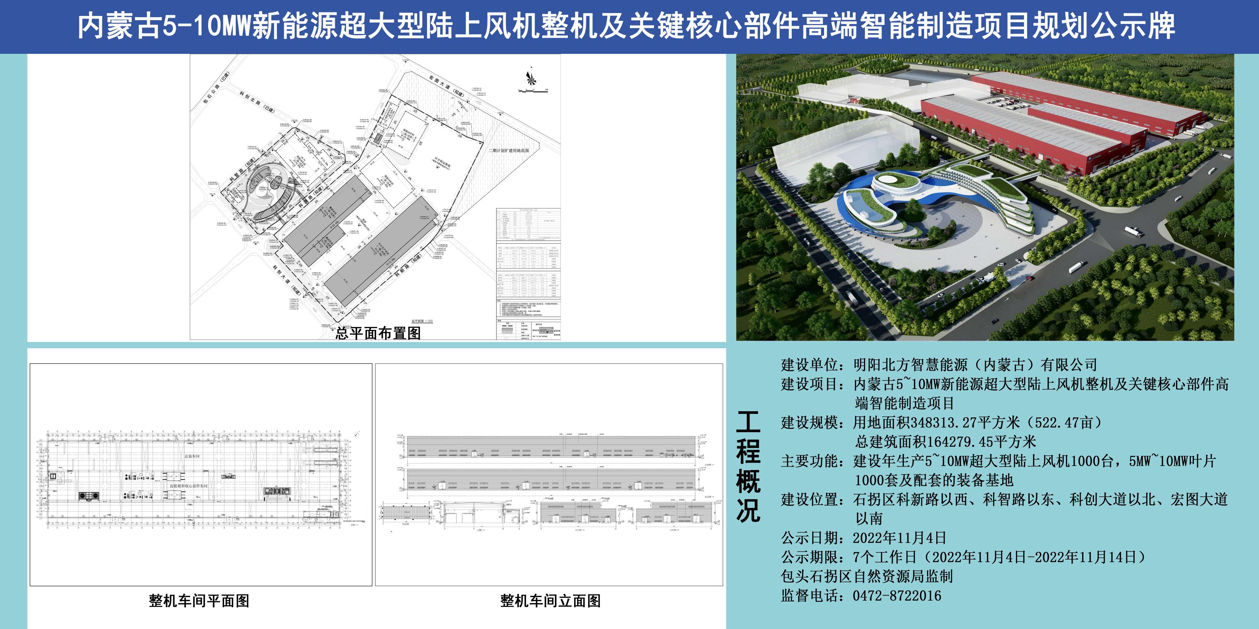 内蒙古5-10MW新能源超大型陆上风机整机及关键核心部件高端智能制造项目规划公示牌