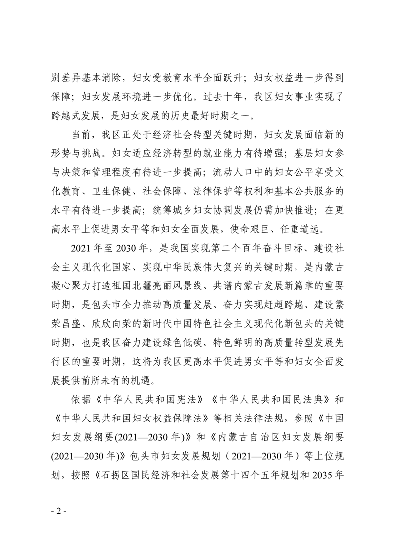 石拐区妇女发展规划(2021—2030年)
