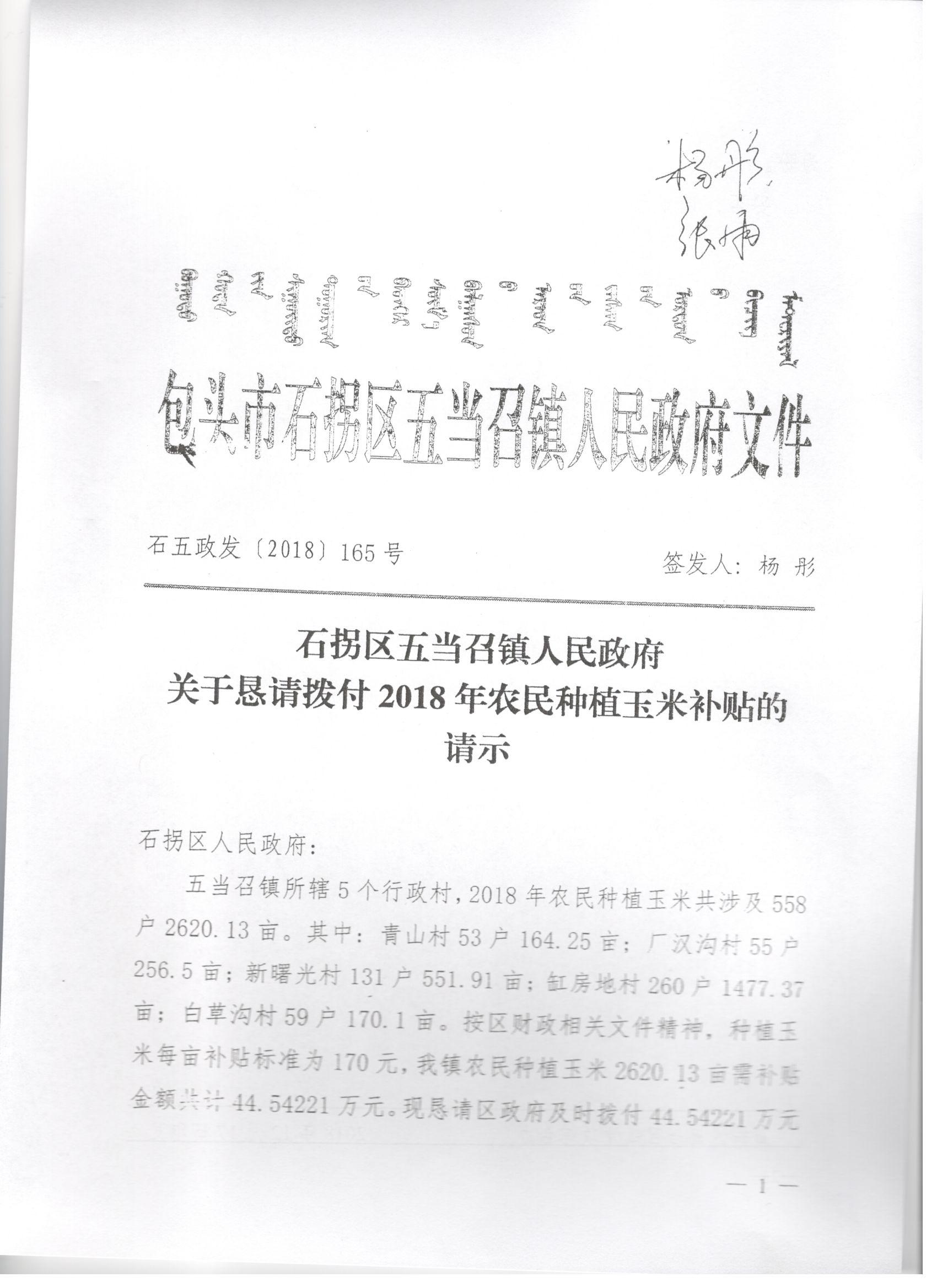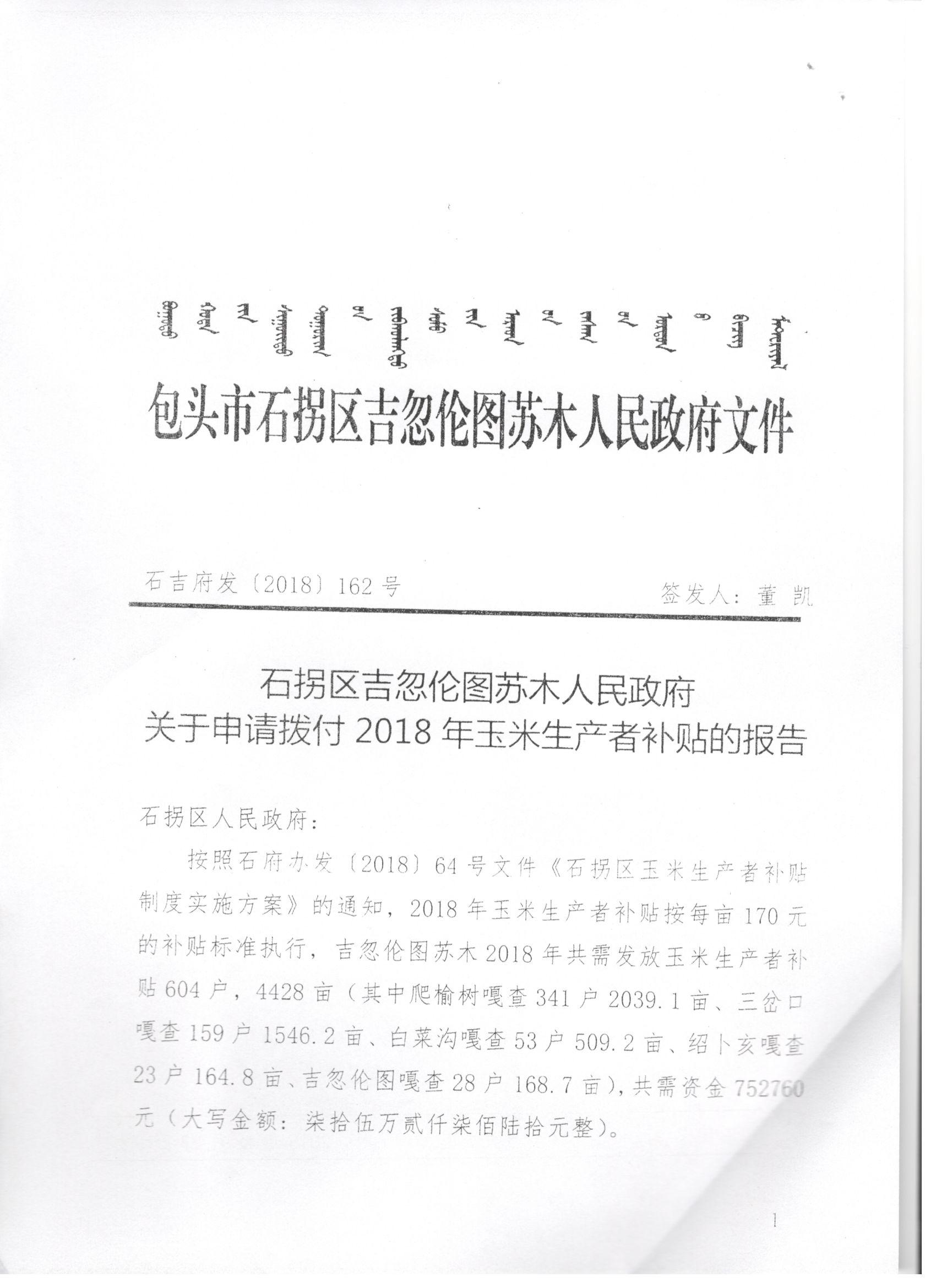 为做好2018年玉米生产者补贴发放工作,区政府结合本地区实际,制定了《2018年石拐区玉米生产者补贴实施方案》,经村、苏木镇街道逐级公示申报,区农牧局核查汇总后,最终核定石拐区2018年玉米生产者补贴面积8226.16亩,每亩补170元。