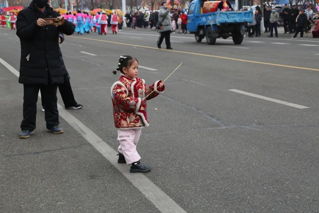 正午时分,激昂的锣鼓声点燃了城市的热情,崇德大街化作欢乐的海洋——骑在爸爸肩头的孩童来回张望,白发老人搬着小马扎早早占位,举着手机的主播穿梭人群,将这份热闹实时传递。近千名表演者齐聚一堂,以花车巡游、秧歌展演、民俗绝活等形式,为全区人民献上了一场年味浓郁的新春文化盛宴。