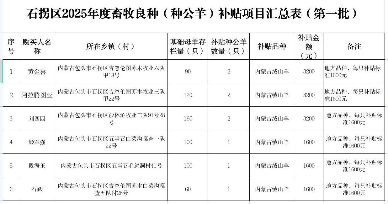附件:石拐区2025年度畜牧良种(种公羊)补贴项目汇总表(第一批)