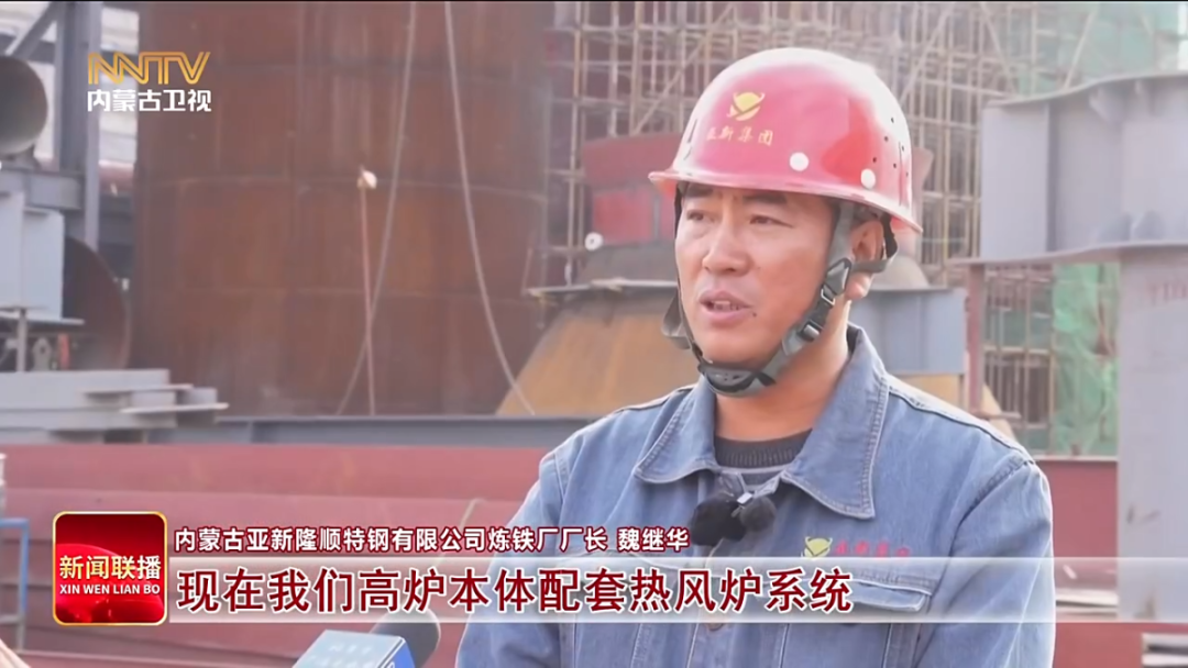 内蒙古亚新隆顺特钢有限公司炼铁厂厂长 魏继华 现在我们高炉本体配套热风炉系统,以及其他公共辅助设施等等48个标段现在正同步施工,预计今年年底主体工程全部完工,投产以后将更加的绿色环保、节能高效。