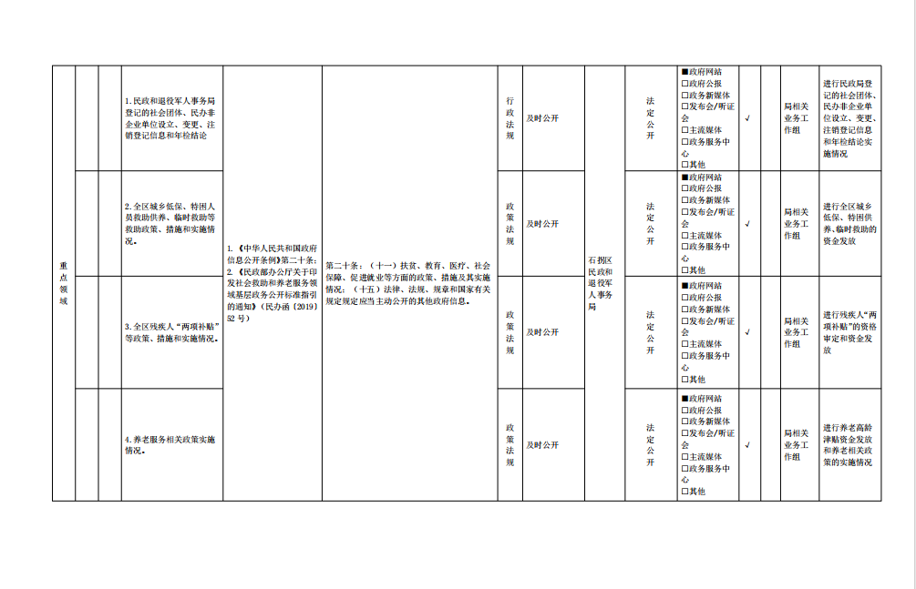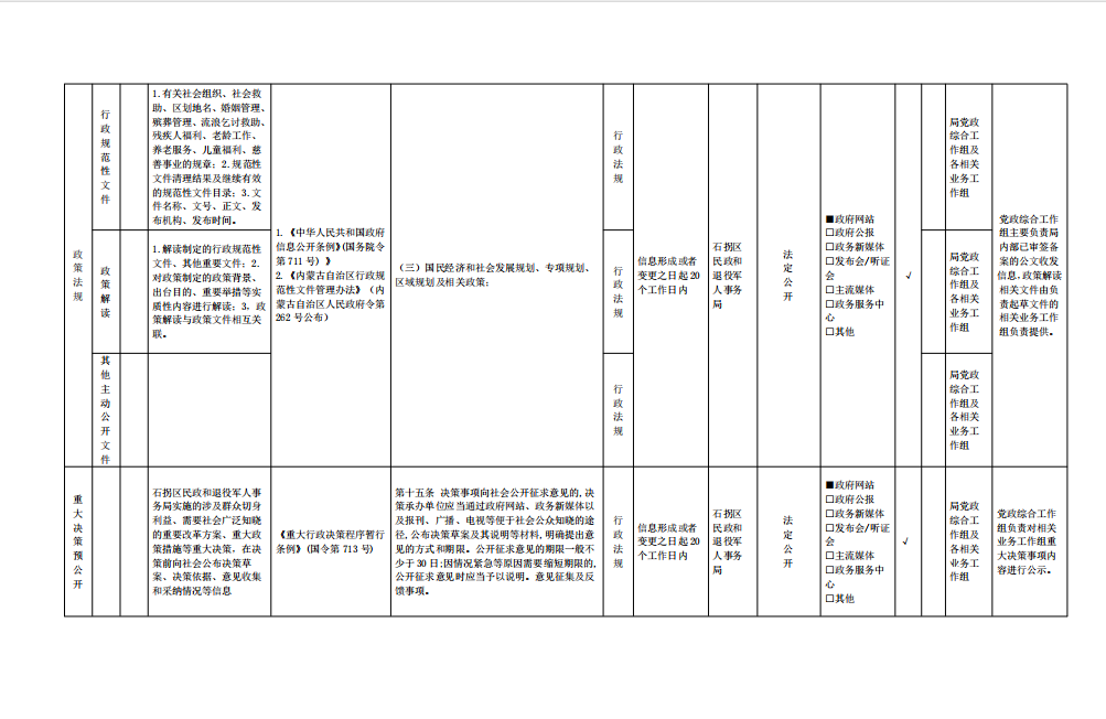 石拐区民政和退役军人事务局主动公开事项目录