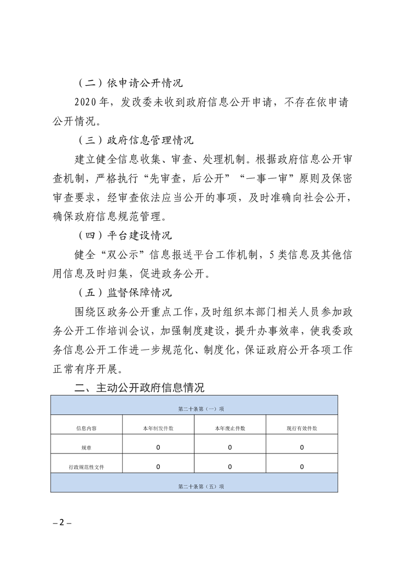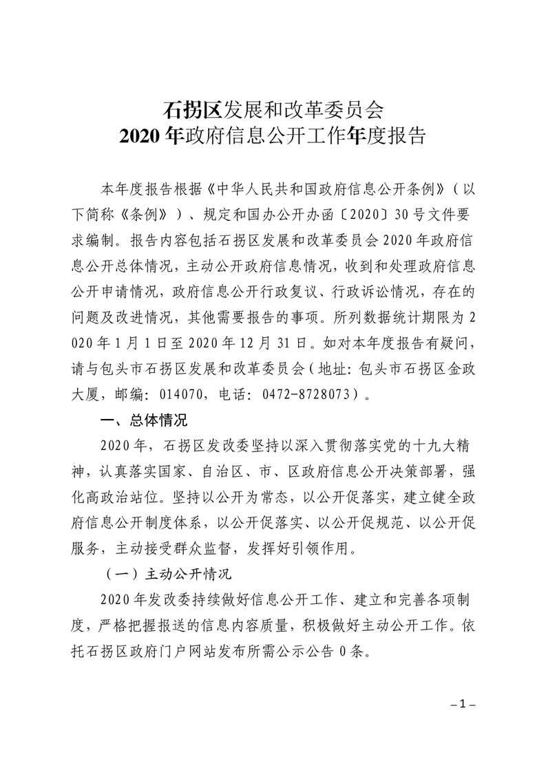石拐区发展和改革委员会 2020年政府信息公开工作年度报告