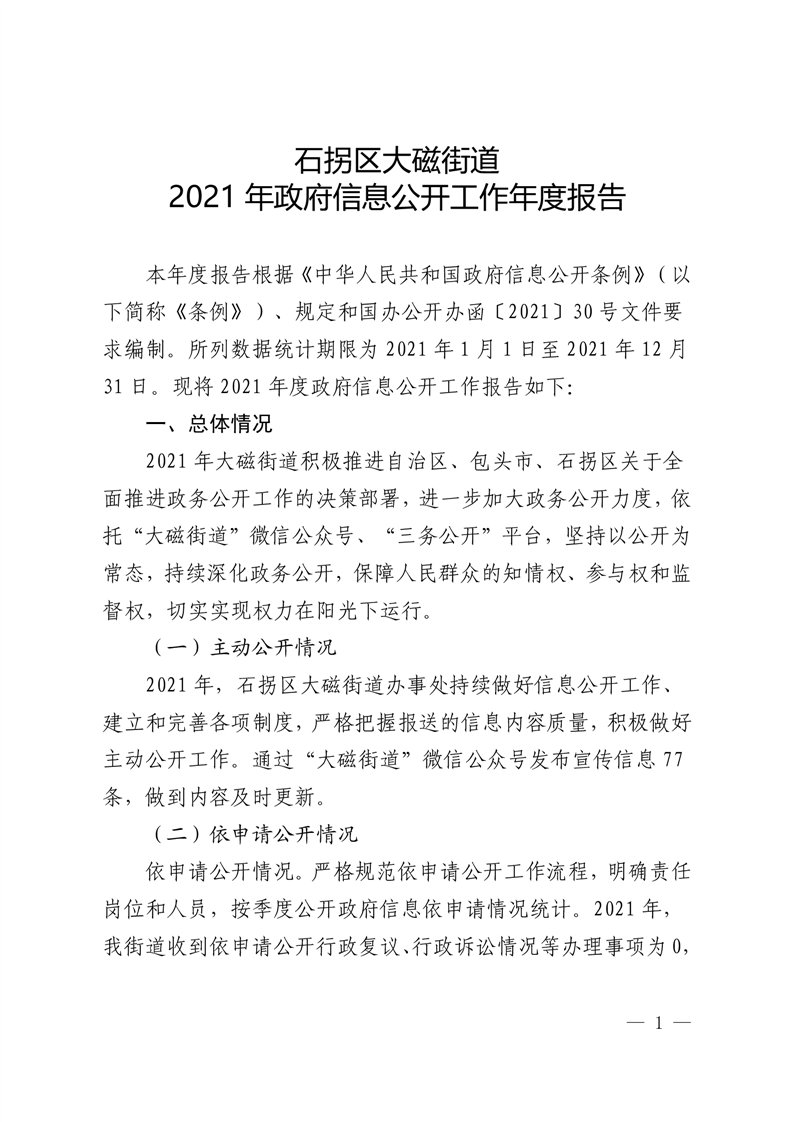 石拐区大磁街道 2021年政府信息公开工作年度报告