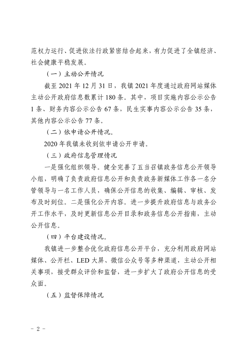 石拐区五当召镇人民政府 2021年政府信息公开工作年度报告