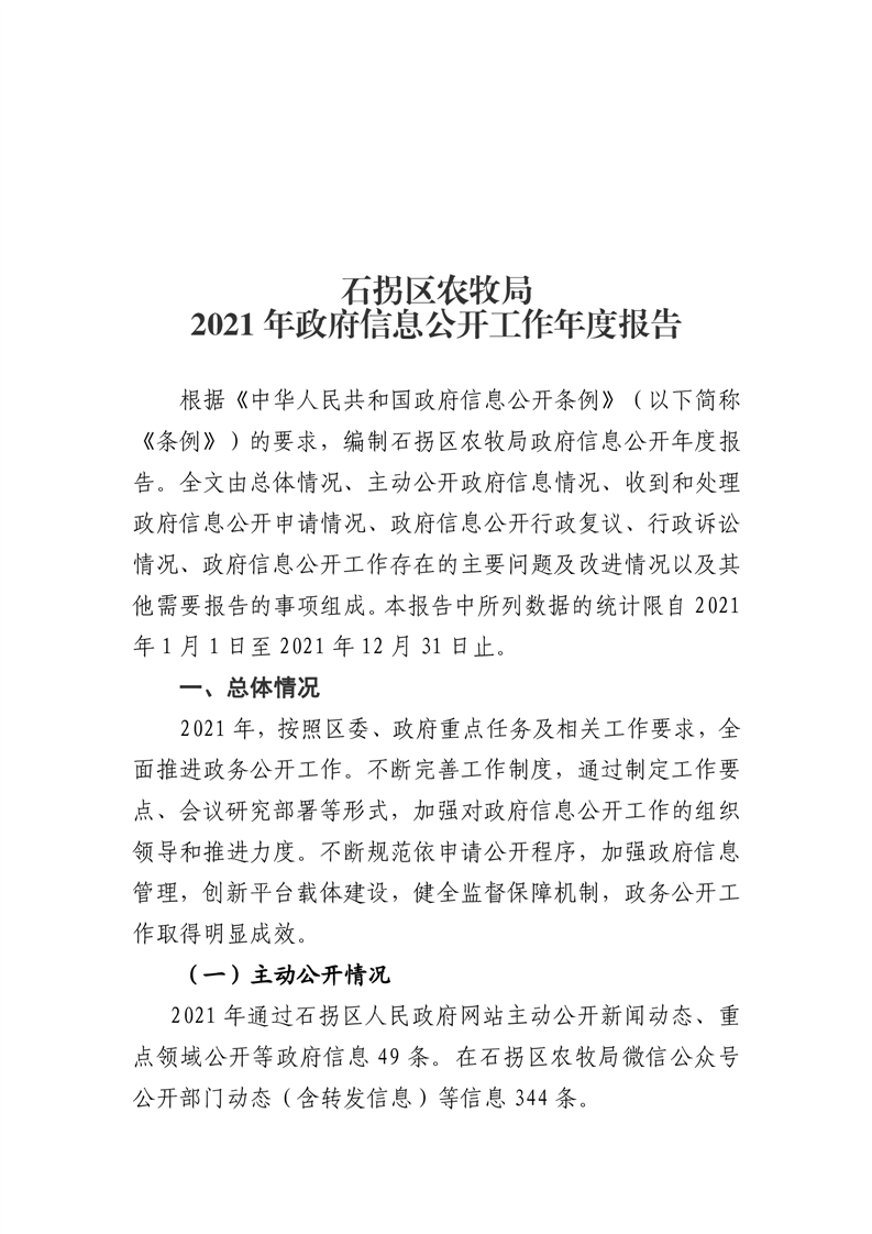 石拐区农牧局 2021年政府信息公开工作年度报告