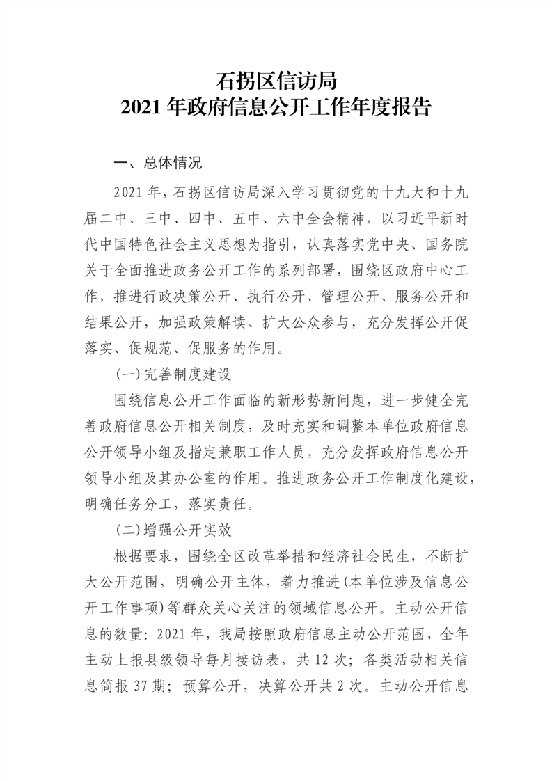 石拐区信访局 2021年政府信息公开工作年度报告