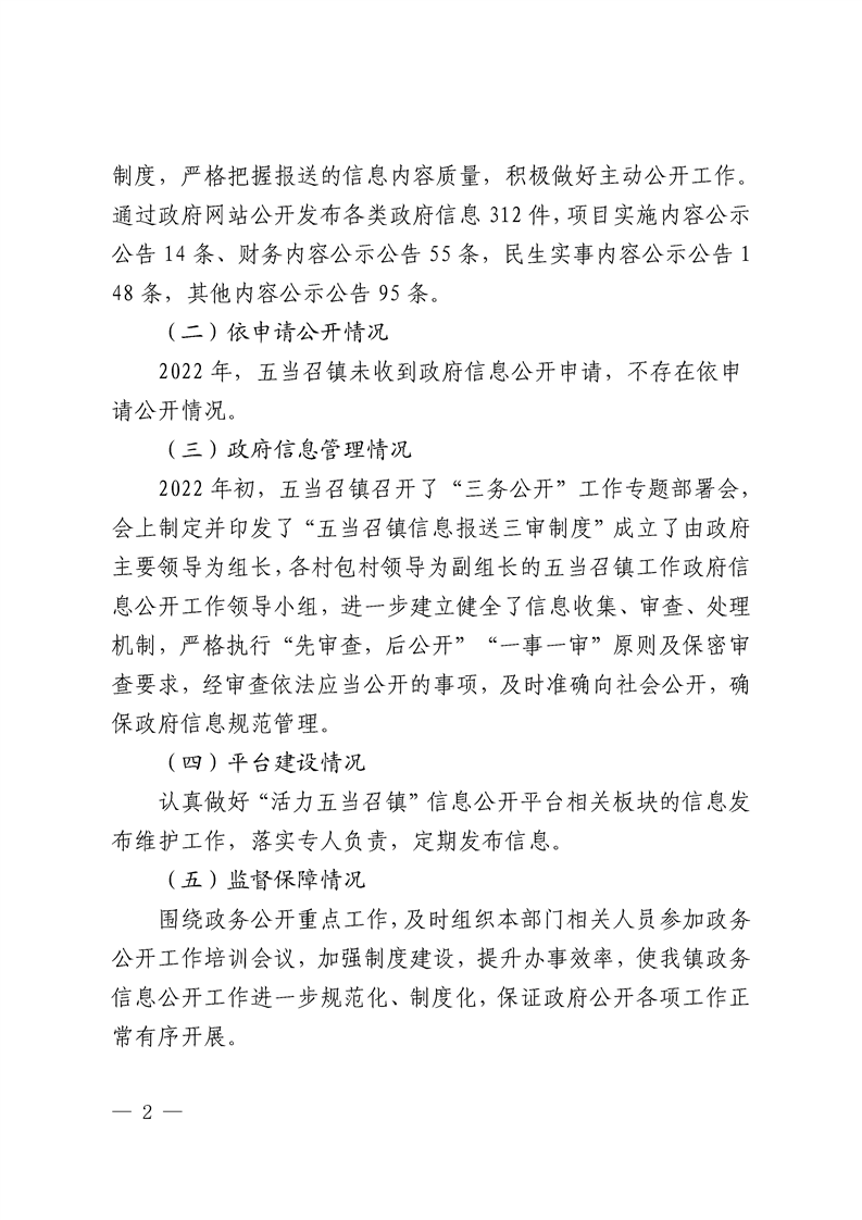 石拐区五当召镇人民政府2022年政府信息公开工作年度报告