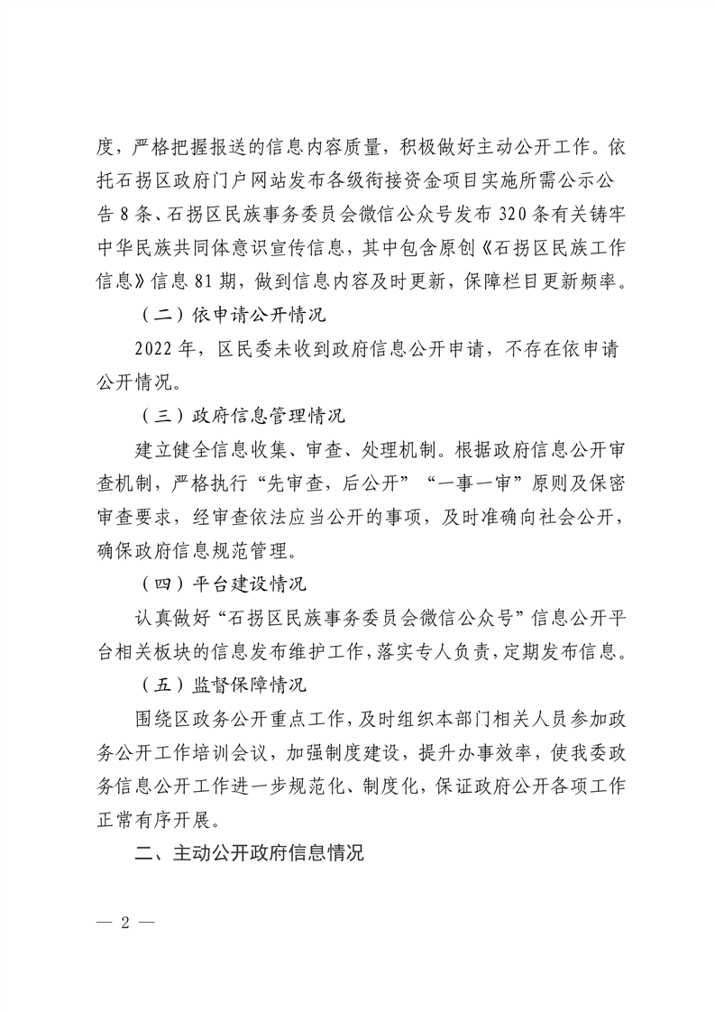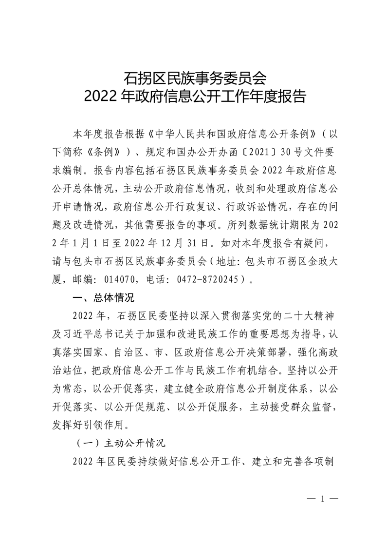 石拐区民族事务委员会 2022年政府信息公开工作年度报告