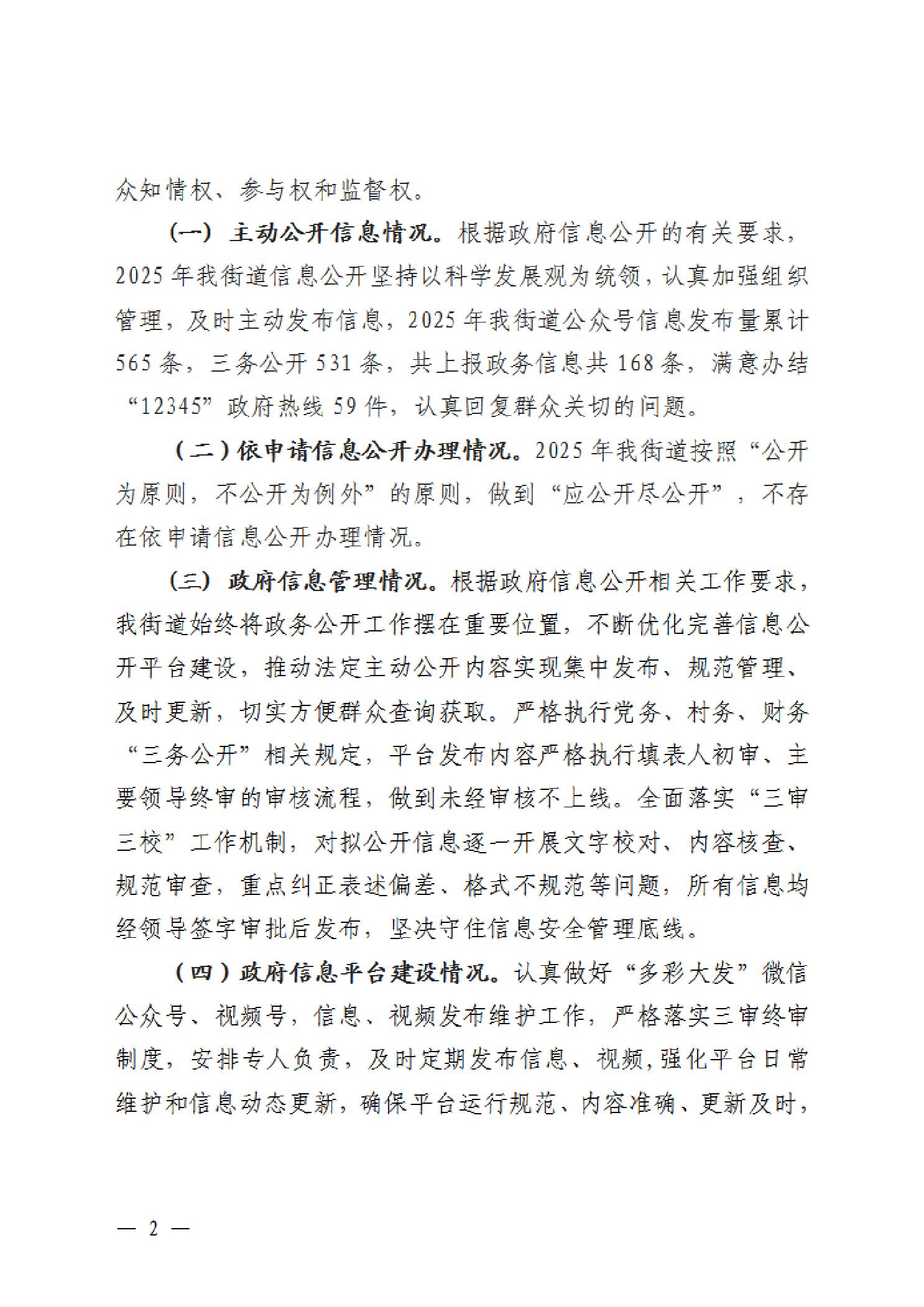 石拐区大发街道办事处2025年政府信息公开工作年度报告