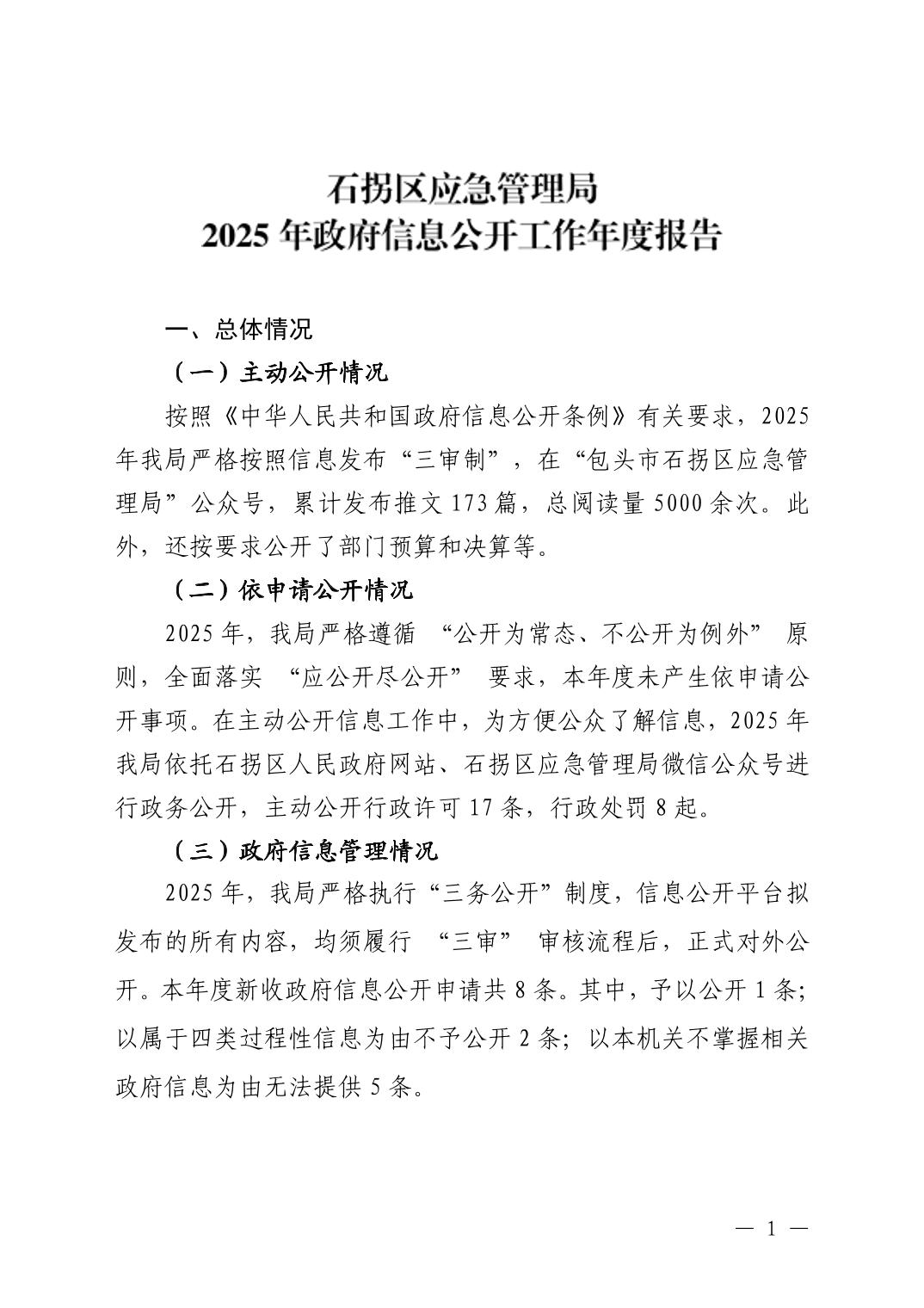 石拐区应急管理局2025年政府信息公开工作年度报告