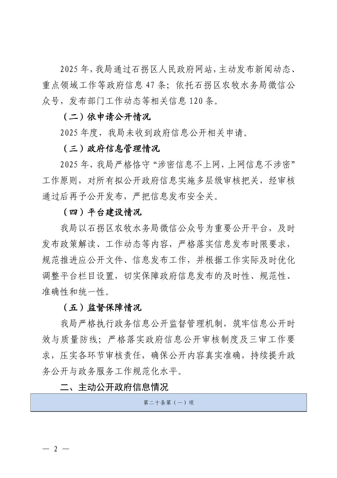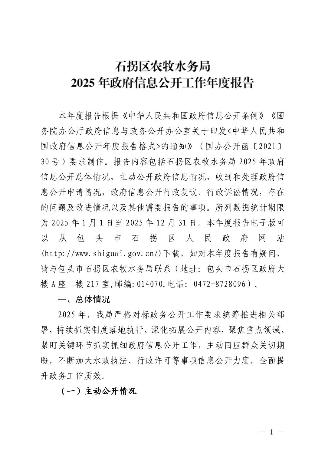石拐区农牧水务局2025年政府信息公开工作年度报告