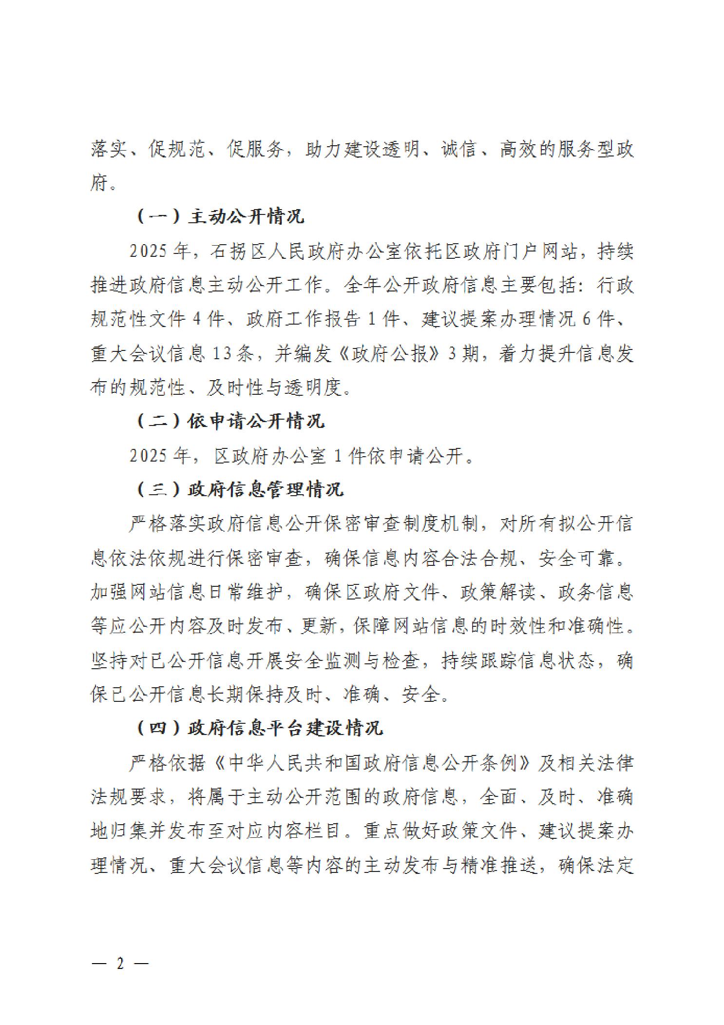 石拐区人民政府办公室2025年政府信息公开工作年度报告