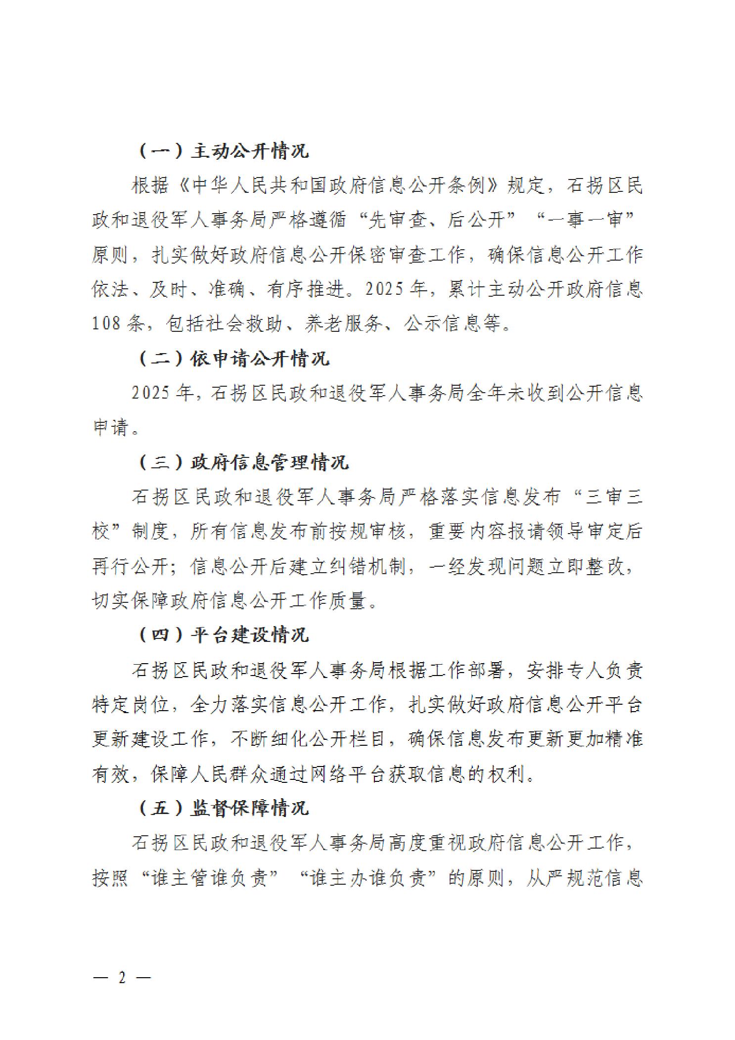 石拐区民政和退役军人事务局2025年政府信息公开工作年度报告