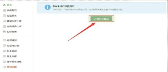 登录或注册完后,进入登记,点击“开始兵役登记”