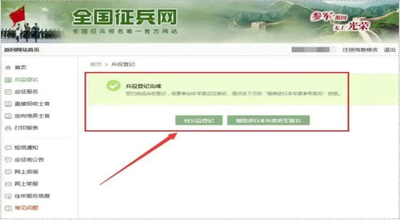 不应征报名人员选择“仅兵役登记”,如果要参加2026年应征报名选择“继续进行本年度参军报名”