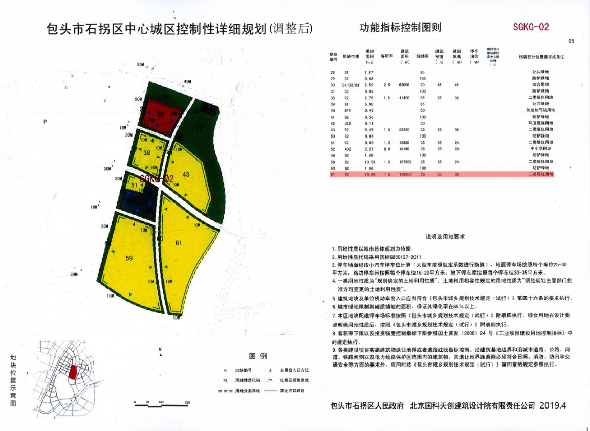 拟修改规划《包头市石拐区中心城区 SGKG-02 控制单元61地块控制性详细规划》位于喜桂图新区康宁路南、望溪路东、吉忽伦图大街北,总面积为105941平方米。