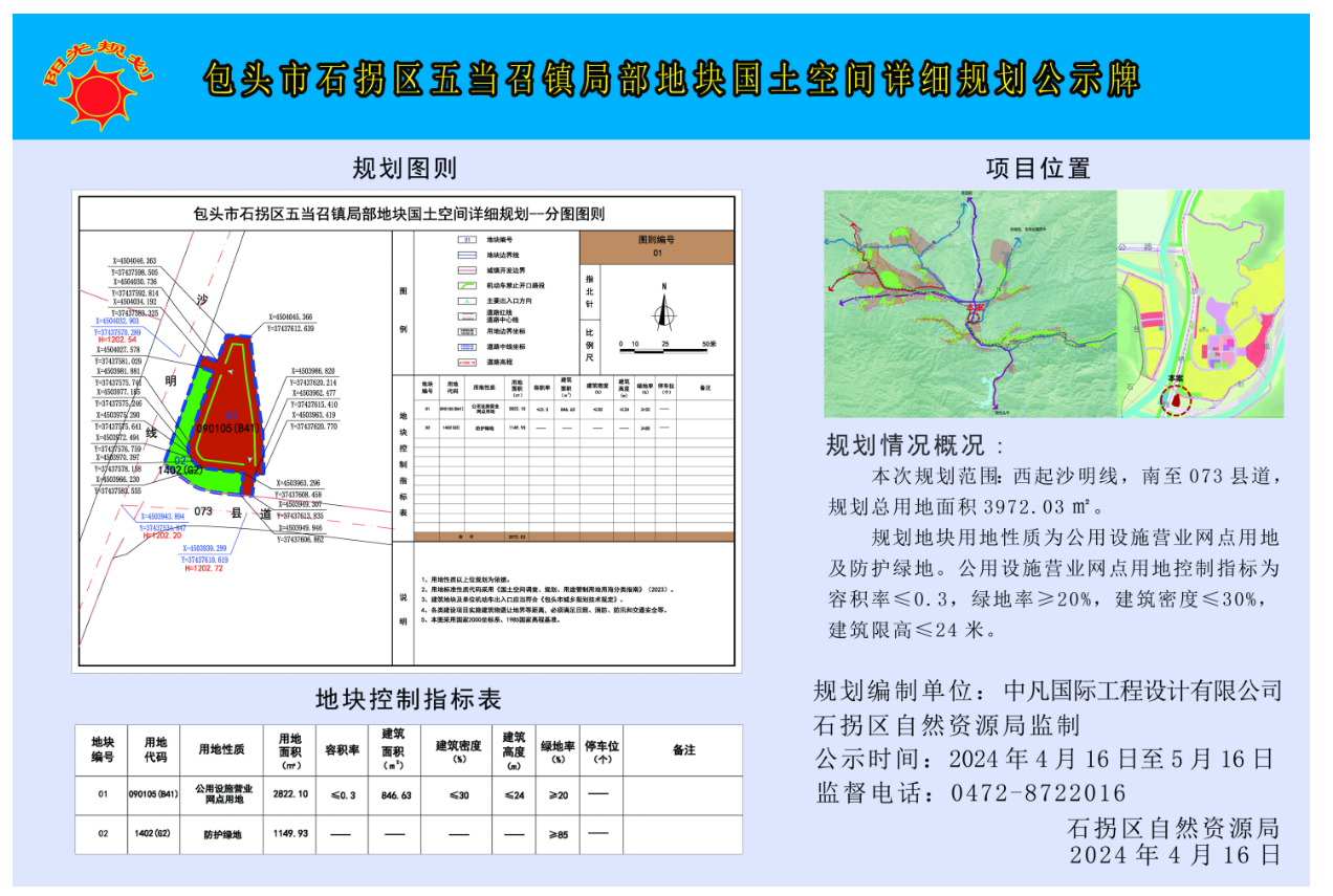 包头市石拐区五当召镇局部地块国土空间详细规划公示牌