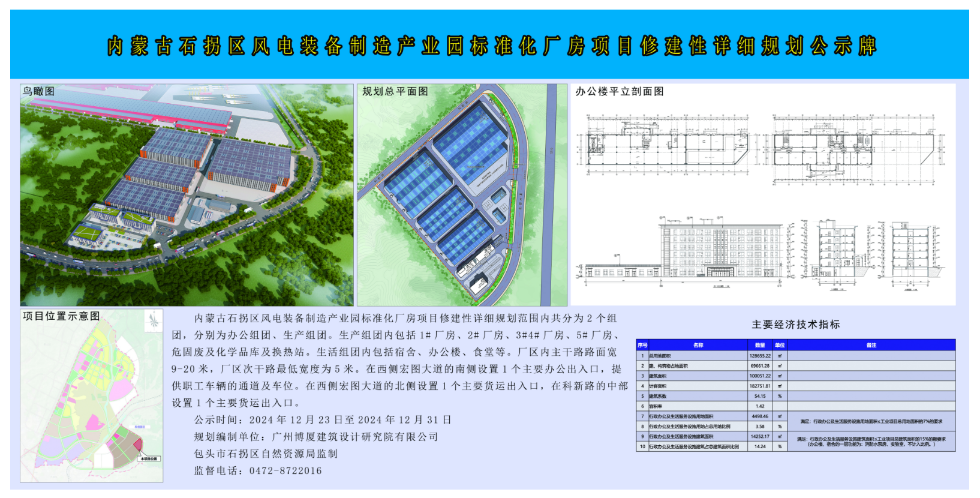 内蒙古石拐区风电装备制造产业园标准化厂房项目修建性详细规划公示牌
