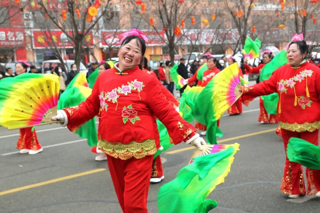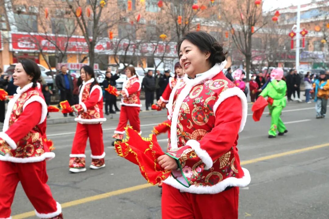 正午时分,激昂的锣鼓声点燃了城市的热情,崇德大街化作欢乐的海洋——骑在爸爸肩头的孩童来回张望,白发老人搬着小马扎早早占位,举着手机的主播穿梭人群,将这份热闹实时传递。近千名表演者齐聚一堂,以花车巡游、秧歌展演、民俗绝活等形式,为全区人民献上了一场年味浓郁的新春文化盛宴。