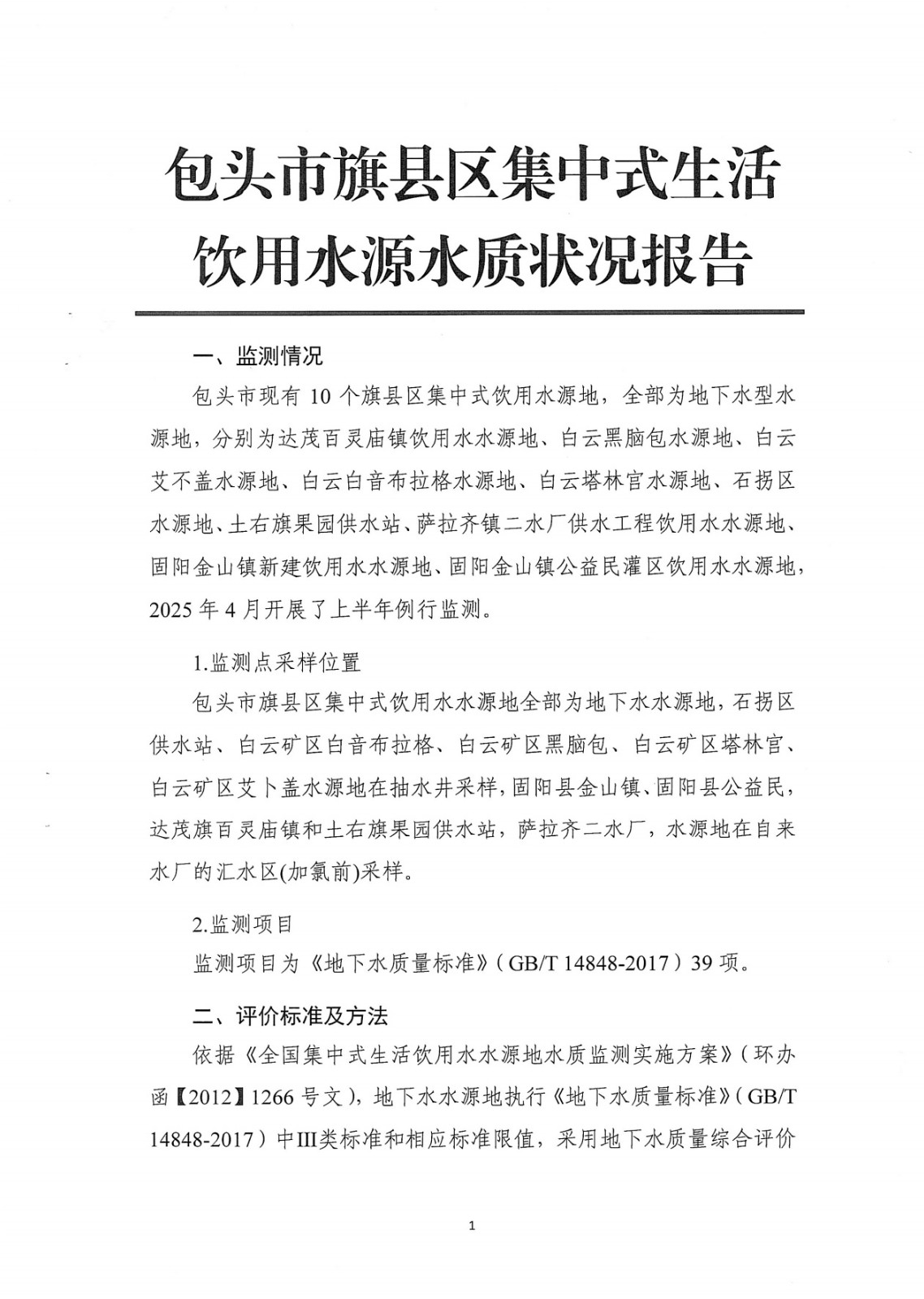 2025年上半年包头市旗县区集中式生活饮用水源水质状况报告