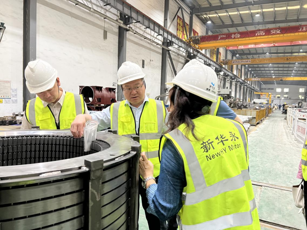 在宜兴华永电机有限公司,盖连玉一行与企业负责人进行座谈,双方就产品特点、创新技术、产业链构建等方面进行了深入的交流和探讨。盖连玉表示,石拐区风电及其装备智能制造旗帜型产业集群已逐渐成势起效,正在争当全国最具影响力的陆上风电装备制造产业排头兵,欢迎宜兴电机等风电产业链上下游企业落户石拐,共谋发展。