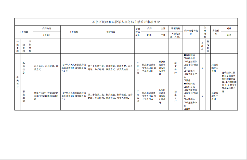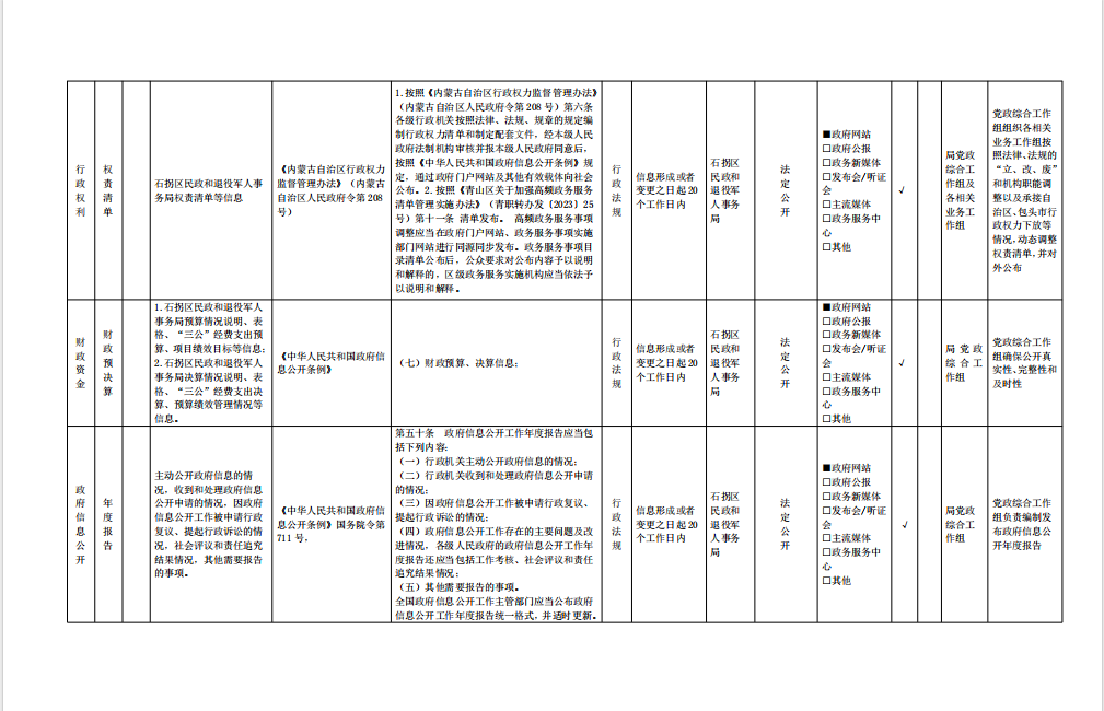 石拐区民政和退役军人事务局主动公开事项目录