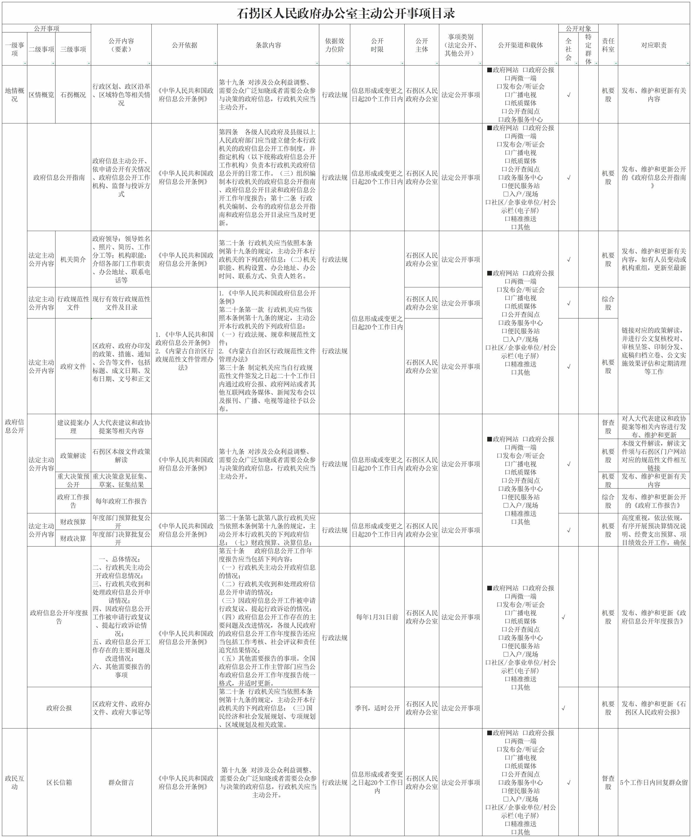 石拐区人民政府办公室主动公开事项目录