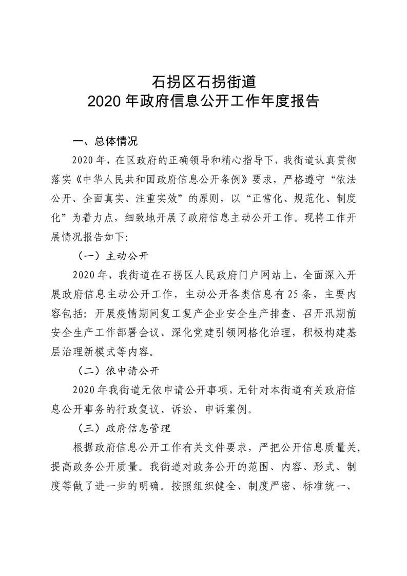 石拐区石拐街道2020年政府信息公开工作年度报告