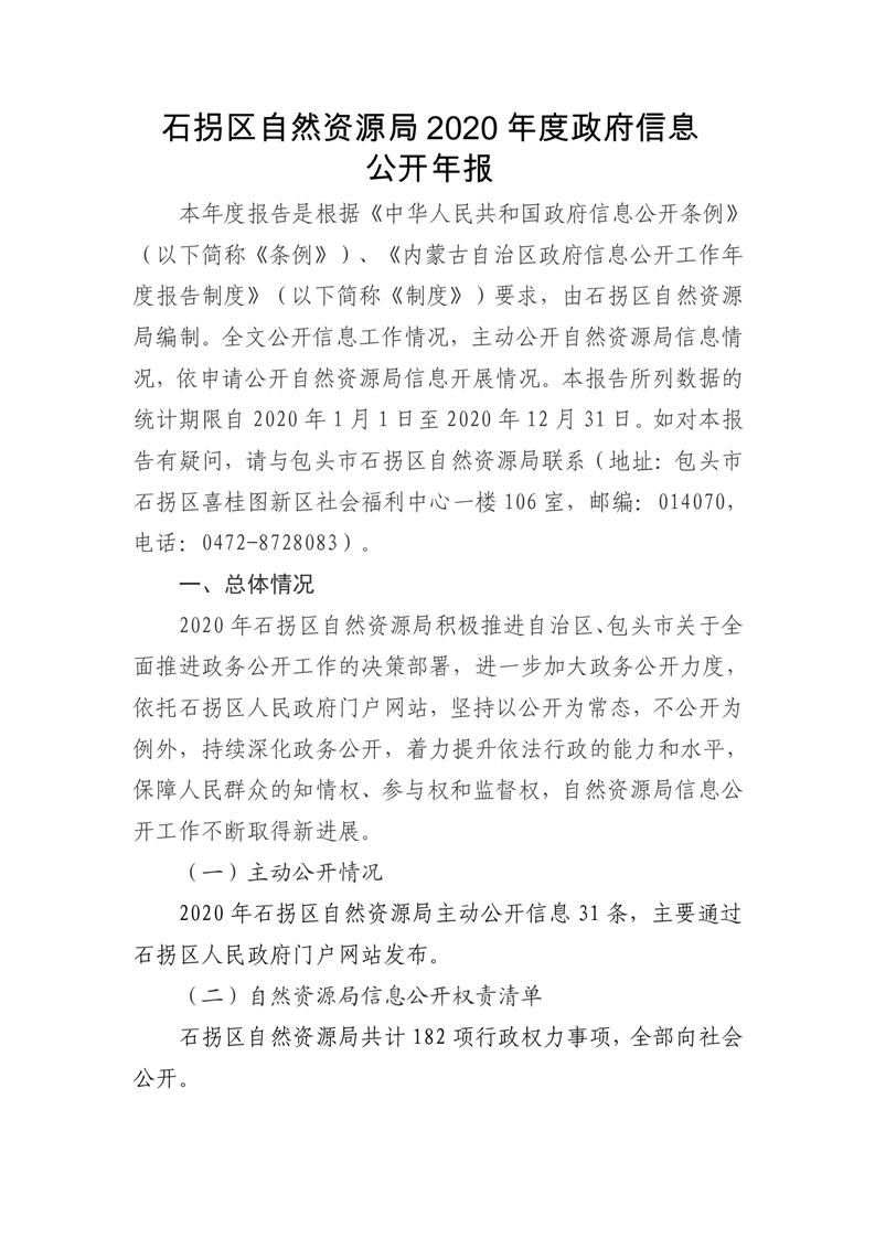 石拐区自然资源局 2020年政府信息公开工作年度报告
