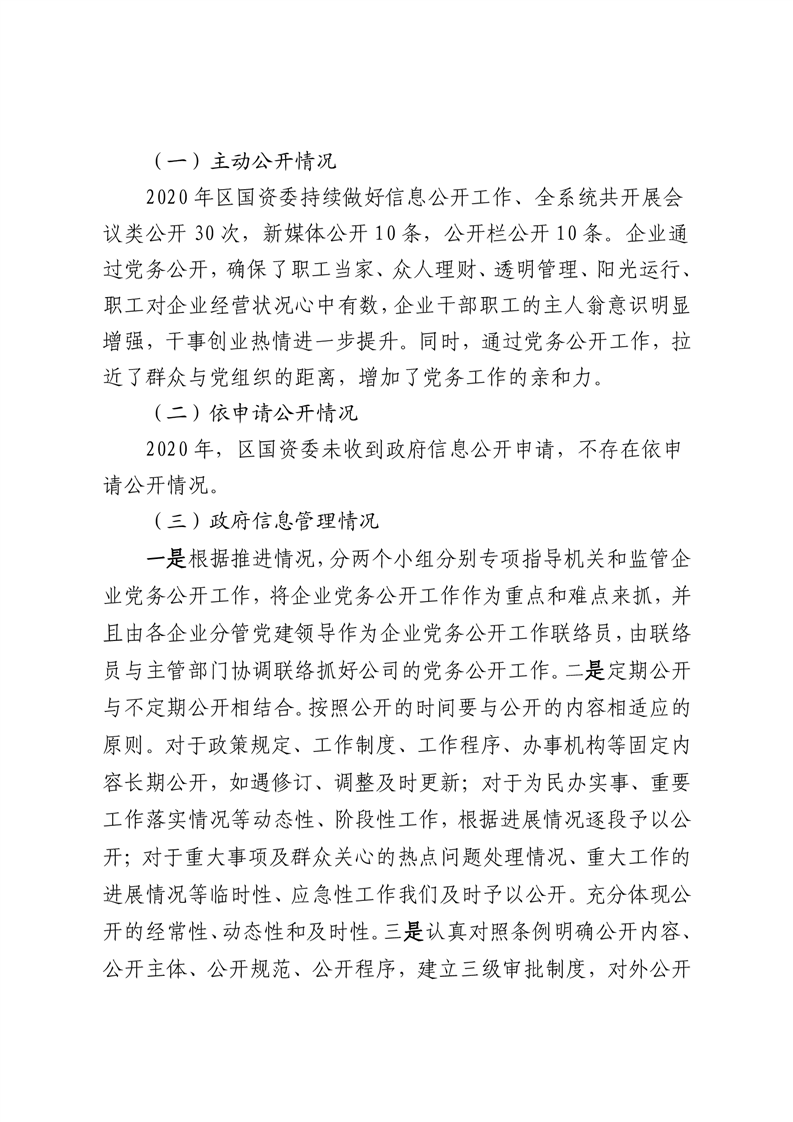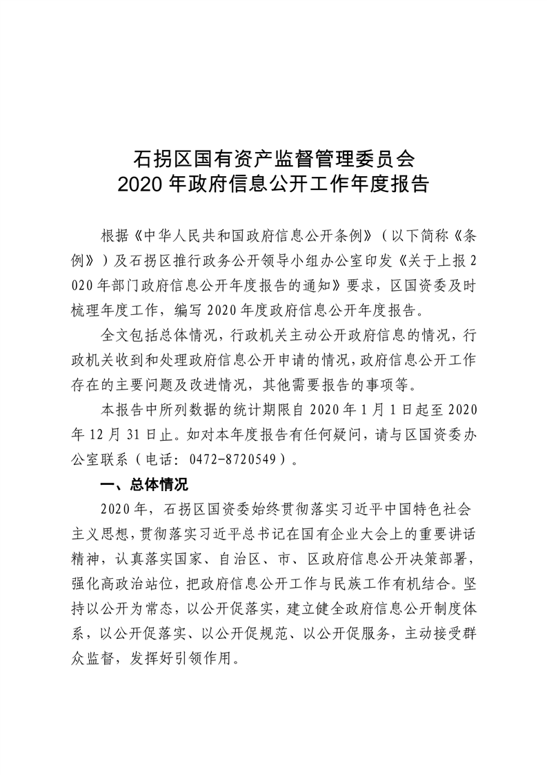 石拐区国有资产监督管理委员会2020年政府信息公开工作年度报告