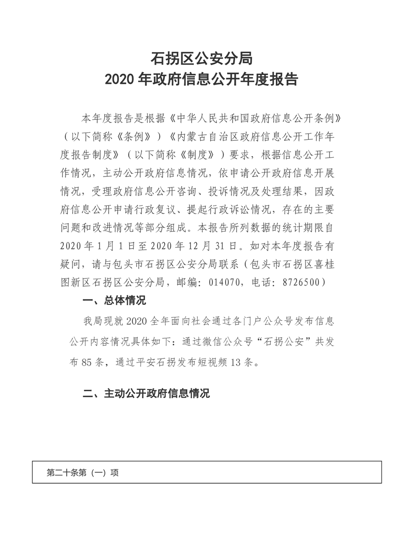 石拐区公安分局 2020年政府信息公开工作年度报告
