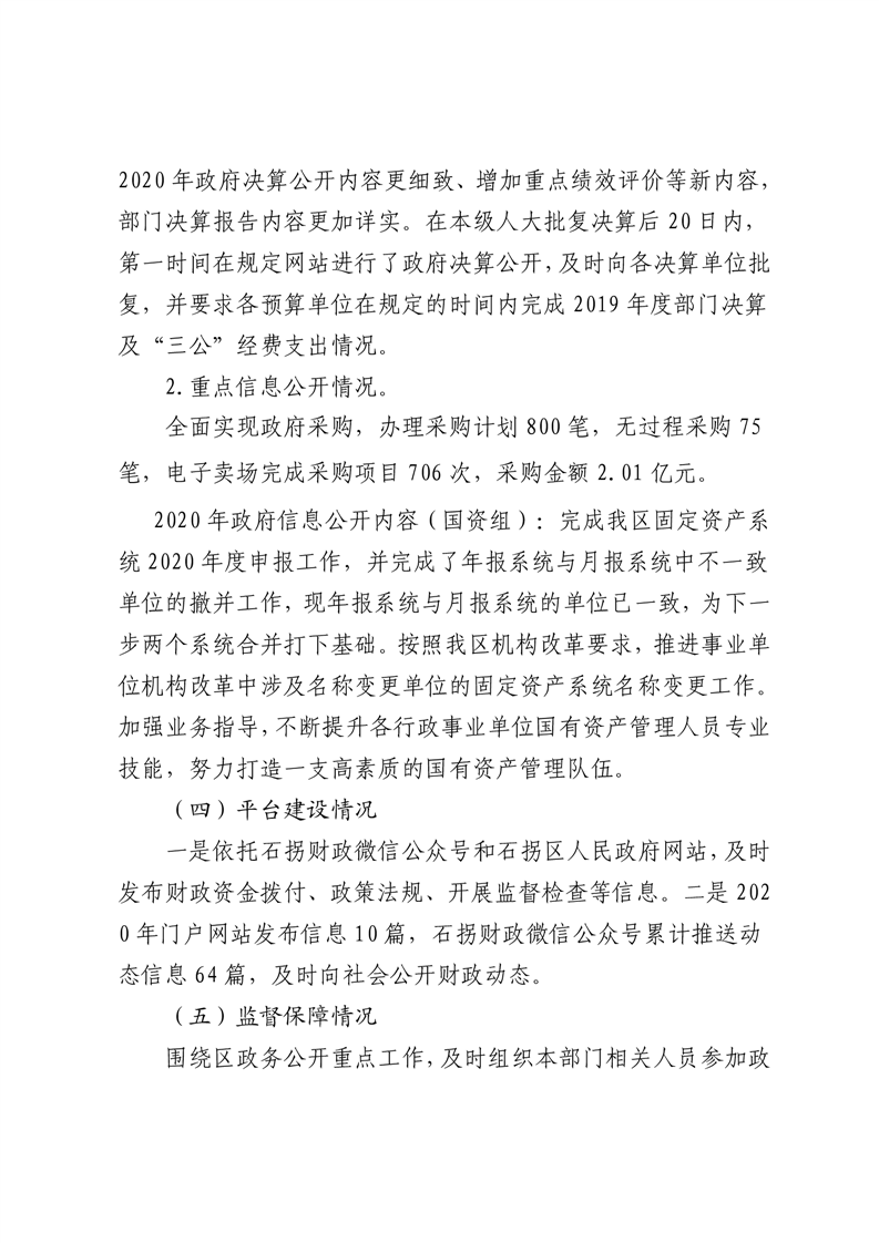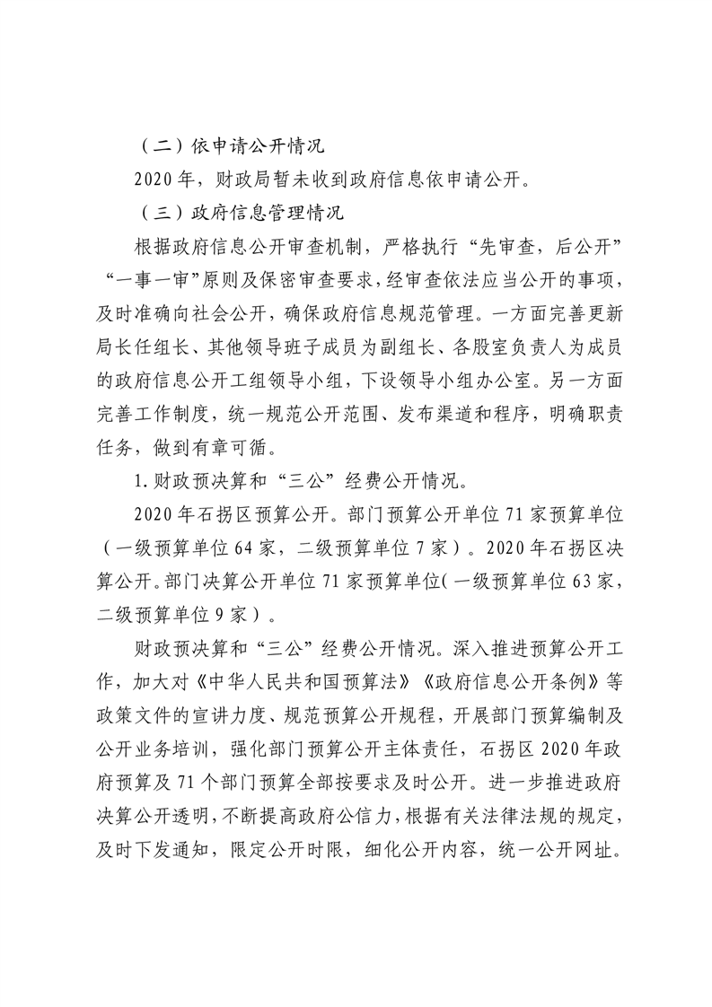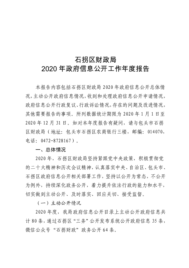 石拐区财政局 2020年政府信息公开工作年度报告