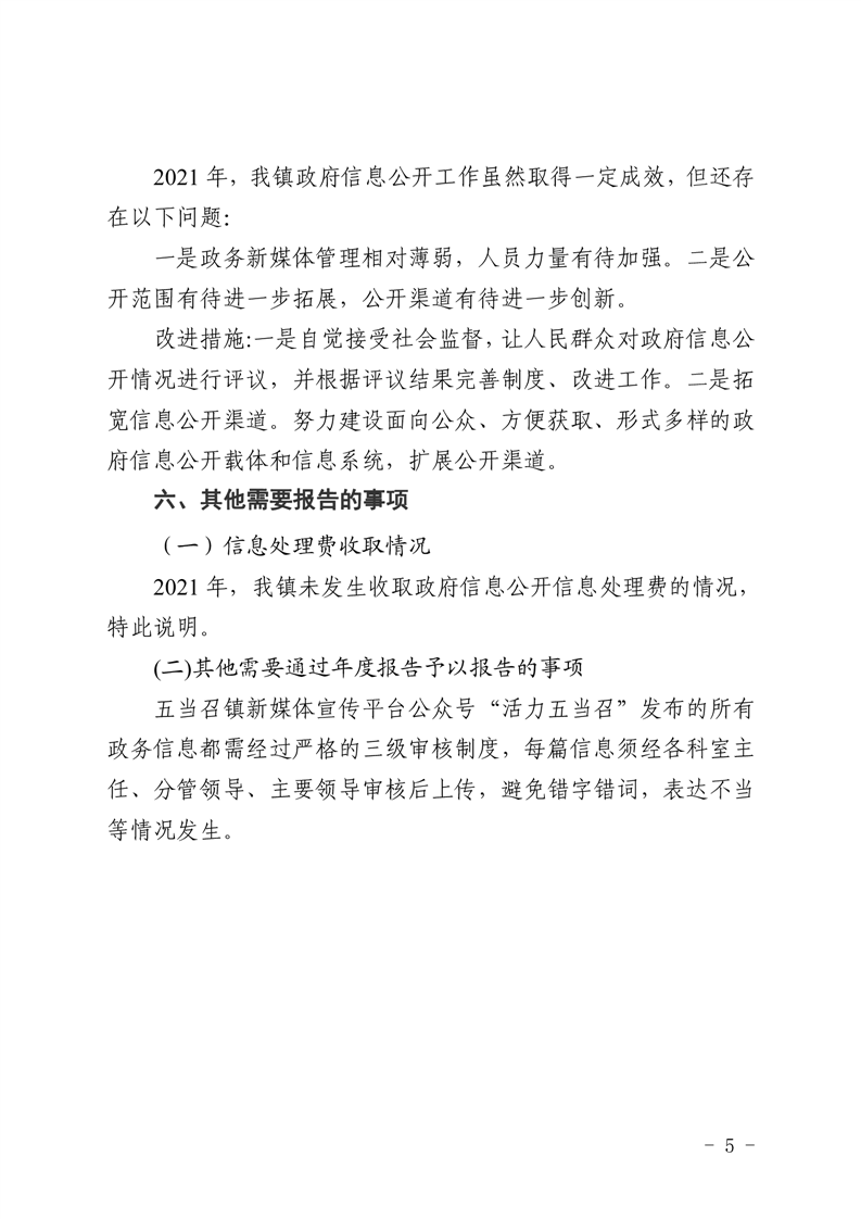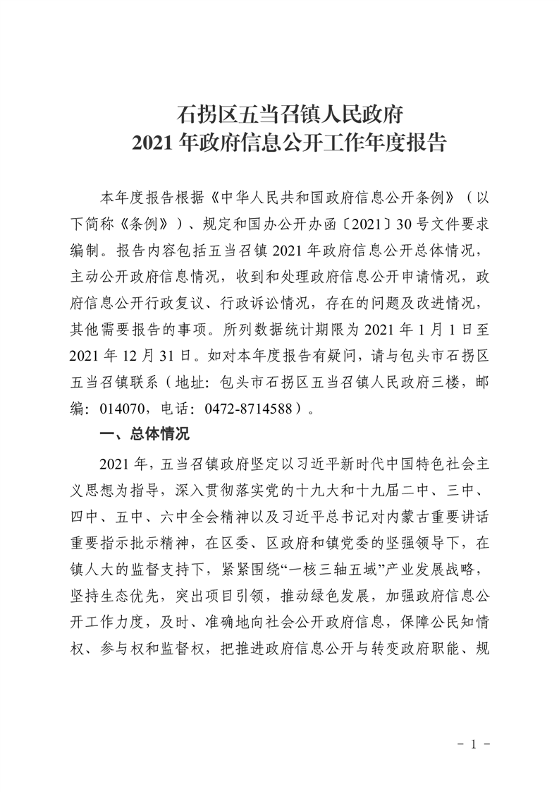 石拐区五当召镇人民政府 2021年政府信息公开工作年度报告