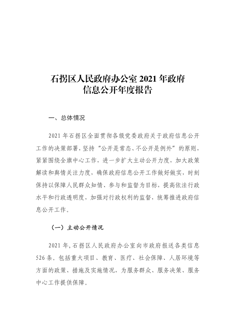 石拐区人民政府办公室 2021年政府信息公开工作年度报告
