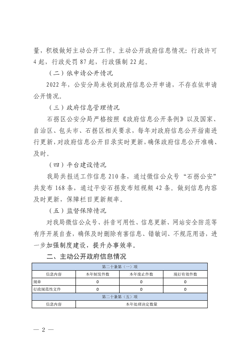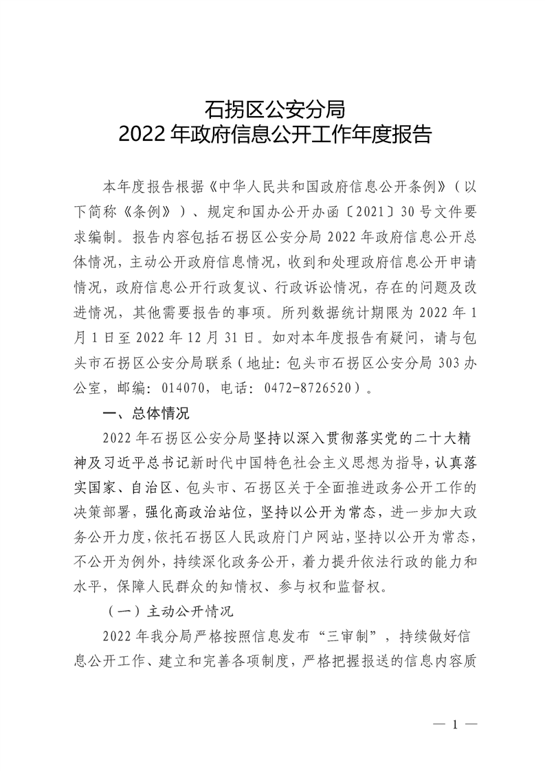石拐区公安分局 2022年政府信息公开工作年度报告