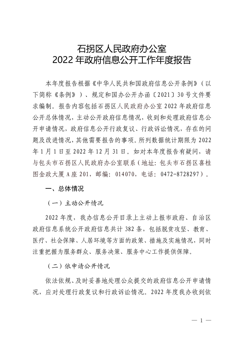 石拐区人民政府办公室 2022年政府信息公开工作年度报告