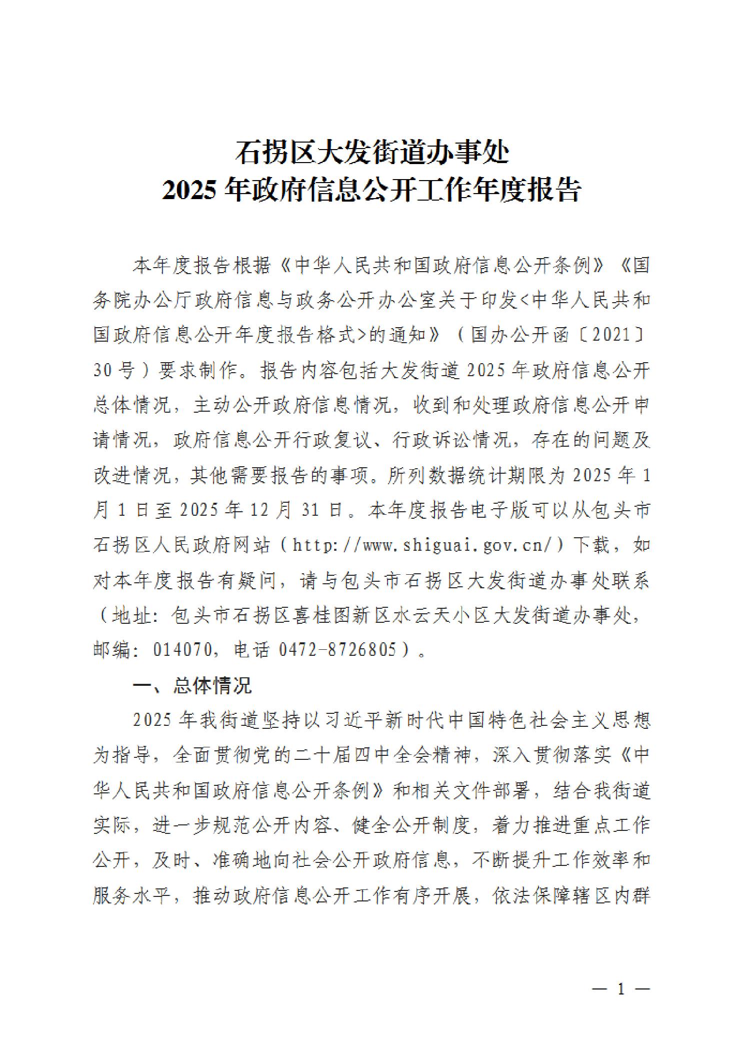 石拐区大发街道办事处2025年政府信息公开工作年度报告
