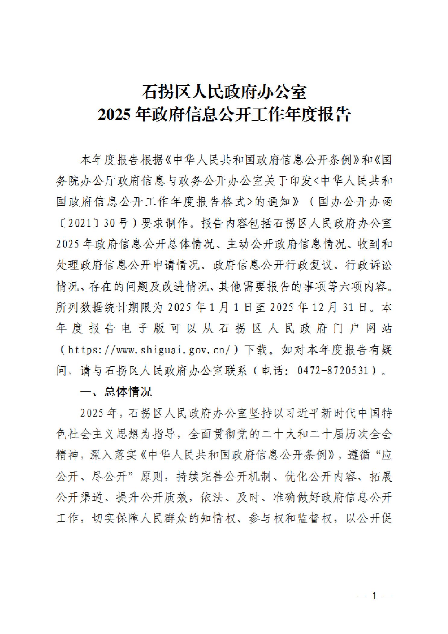 石拐区人民政府办公室2025年政府信息公开工作年度报告