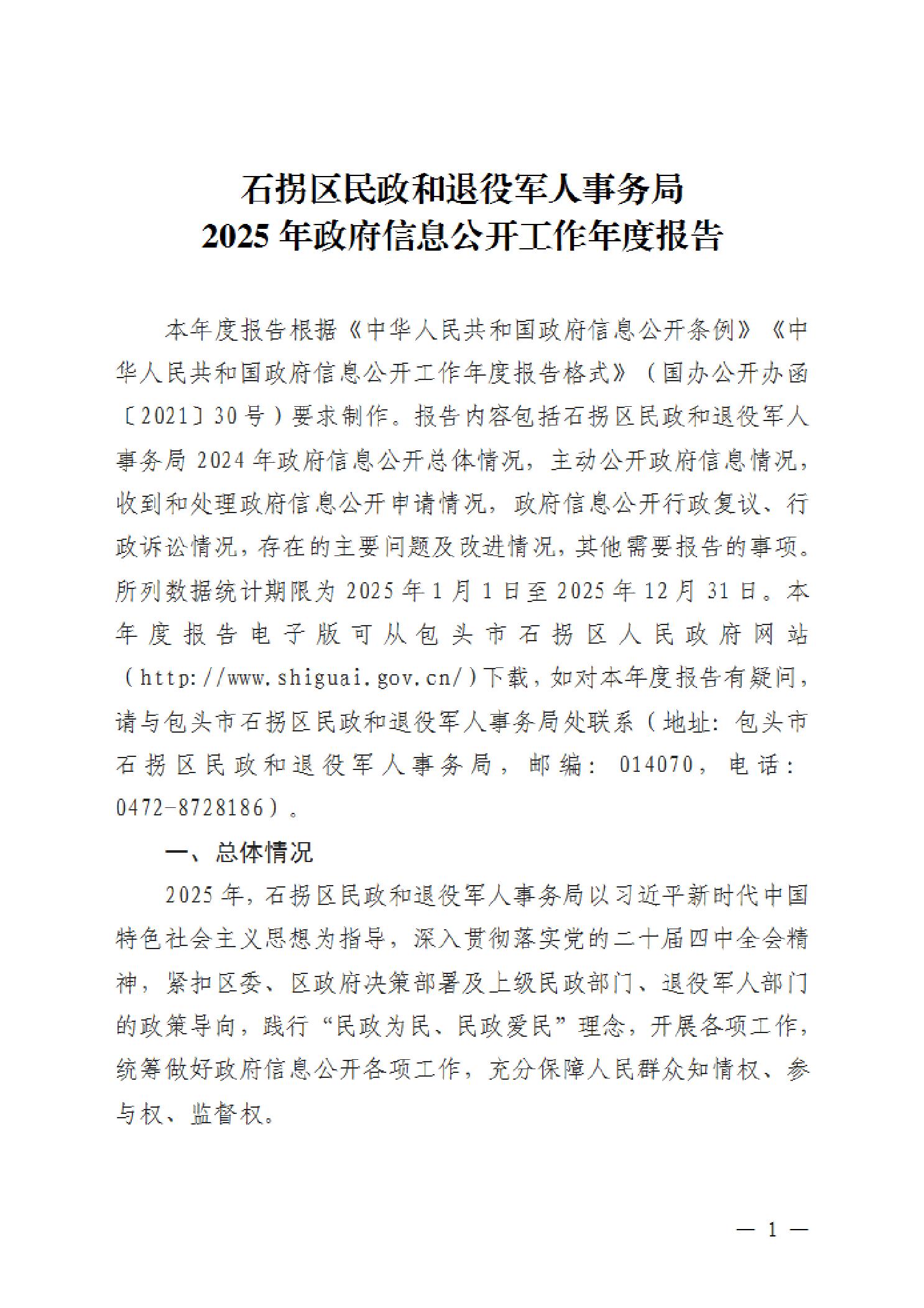 石拐区民政和退役军人事务局2025年政府信息公开工作年度报告