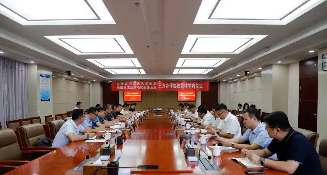 8月1日,明阳集团2024年下半年订单属地化配套三方协议签订仪式在石拐区举行。